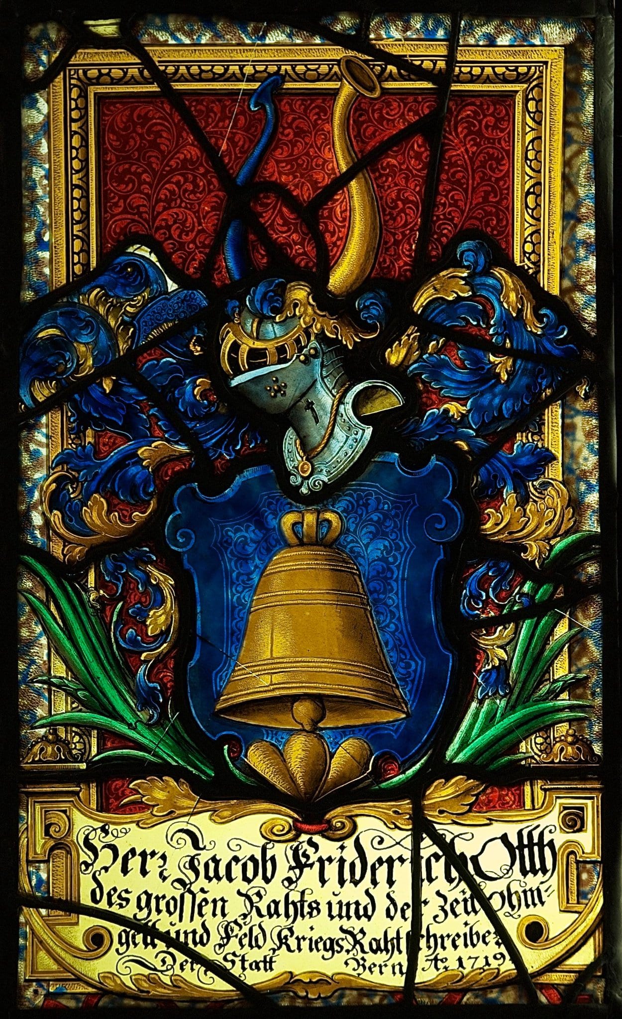 Im Jahre 1719 ist in Bern als einziger Glasmaler Andreas Fueter nachgewiesen. Obwohl man von ihm keine ähnlich komponierten Werke kennt, darf man in Otths Scheibe eine Arbeit Fueters sehen. Dafür sprechen ihre detaillierte Malweise, ihr Schriftcharakter und ihre Helmdecke, die ähnlich gestaltet ist wie diejenige auf der von Fueter monogrammierten Wappenscheibe des Christoph und Anton von Graffenried aus dem Jahre 1726 in der Kirche Worb.