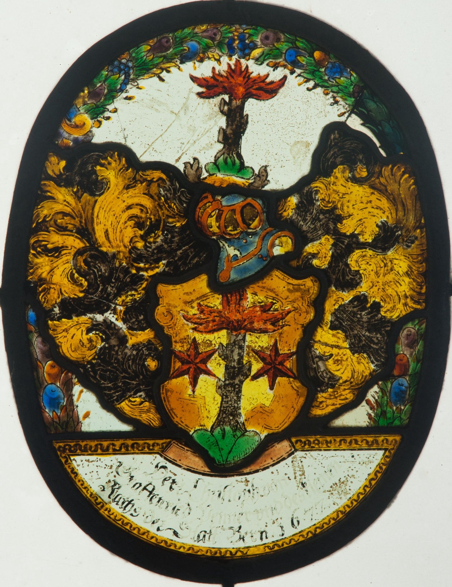 Aufgrund der Schrift dürfte das vorliegende Werk eine der wenigen ovalen Wappenscheiben aus der Hand des Berner Glasmalers Matthias Zwirn darstellen. Gut vergleichbar ist die monogrammierte Scheibe im Schweizerischen Nationalmuseum von Zürich, die Zwirn 1658 für die Talschaft Lauterbrunnen ausführte (Inv. LM 6375; Schneider 1971, Bd. II, Kat.-Nr. 607).