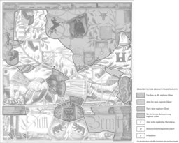 Die Figur des Berner Stadtgründers Herzog Berchtolds V. von Zähringen ist in blauem Harnisch und rotem Waffenrock zwischen einer Kanone mit ihrer Munition und dem Schild mit dem Zähringer Wappen liegend auf dem Podium festgehalten. Aus ihr hervor wächst der Ämterbaum, der ausser den Wappen der bernischen Ämter Erlach, Aeschi, Nidau, Brugg und Weissenburg mehrere nicht zum Originalbestand gehörende Wappen (neben unbekannten jene der eidgenössischen Stände Schaffhausen, Glarus, Uri, Schwyz, Unterwalden) umfasst. Innerhalb des Baumes erscheint eine Stadtansicht Berns. Das beschriftete Podium enthält im Zentrum die bekränzte Wappenpyramide Bern-Reich.