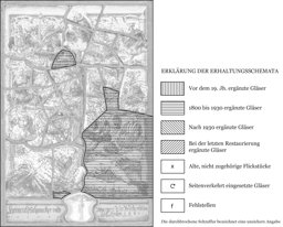 Die Scheibe zeigt den vor blauem Grund am Boden liegenden Jesse, aus dem der Baum mit den Vorfahren Christi wächst. In der Baumspitze ist das Christkind im Schosse Mariens festgehalten. Die Darstellung wird seitlich und oben von einer gelben Leiste umfasst. Die Stifterinschrift mit dem Wappen Heinrich Schmockers im Zentrum befindet sich am Scheibenfuss.