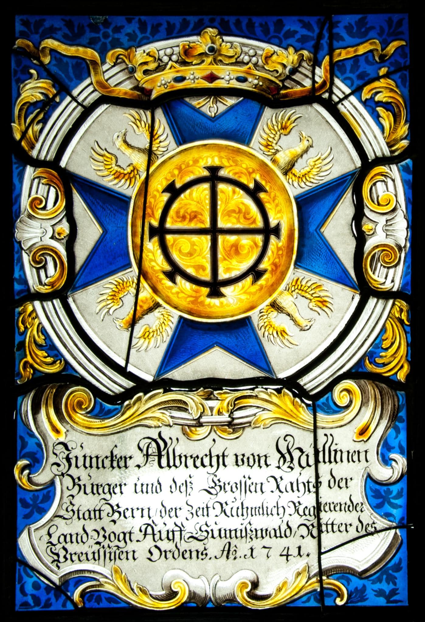 Von Albrecht von Mülinen gibt es das Glasgemälde von 1741 im Schloss Jegenstorf und eine verschollene Schliffscheibe von 1751 (Kat. Stuker 1989, Nr. 2292). Verschollen ist ebenfalls seine 1731 in die Kirche Muri gestiftete Wappenscheibe. Vorhanden ist dort aber noch diejenige seiner Frau.