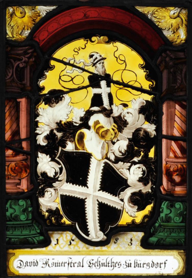 [15 83 / David Römerstral Schůlthes zu bůrgdorf] (die ergänzte Inschrift eingeklammert).
