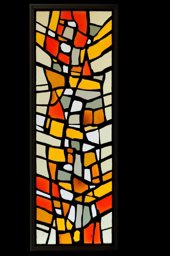 Par ses créations et son engagement dans le domaine artistique, l’artiste fribourgeois Yoki (Emile Aebischer) a acquis un renom dépassant largement les frontières cantonales et nationales. Ses vitraux et dalles de verre ornent d’innombrables bâtiments publics, aussi bien profanes que sacrés, majoritairement en Suisse, mais également à l’étranger. De nombreux particuliers ont également fait appel à l’artiste pour des interventions dans le domaine privé. Yoki adopte la technique de la dalle de verre pour la première fois en 1958 à Fribourg, pour décorer l’ensemble des fenêtres de la chapelle du Séminaire Regina Mundi (Université de Pérolles). Il propose alors une composition figurative (Baud, 2001, p. 59). Dès 1962, l’artiste privilégie l’abstraction, sans délaisser entièrement la figuration. Le Vitromusée Romont conserve par exemple dans ses collections une dalle de verre de 1981 représentant Saint Georges (VMR 240). Pour l’exécution de ses projets de vitraux et de dalles de verres, l’artiste a principalement collaboré avec l’atelier Michel Eltschinger à Villars-sur-Glâne, s’impliquant beaucoup dans le processus d’élaboration. Artiste polyvalent, connu notamment pour ses peintures, tapisseries, mosaïques et fresques, Yoki a “toujours été un excellent ambassadeur du vitrail” (Baud, 2001, p. 7). Il est cofondateur en 1981 du Musée suisse du vitrail à Romont, ville qui l’a vu grandir et où il a côtoyé Fernand Dumas et Alexandre Cingria, meneurs du groupe de Saint-Luc.