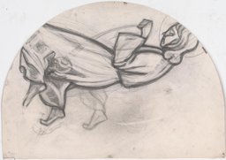 Plus de 70 projets peuvent être rattachés aux vitraux de Saint-Paul, et 51 aux trois vitraux des bas-côtés, mais l’ensemble n’est probablement pas complet. Pour le vitrail de sainte Cécile, il existe 17 oeuvres graphiques dont trois peuvent être reliées à la scène supérieure du vitrail (MP_01.01 ; MP_01.02 ; MP_01.03). Elles illustrent particulièrement bien les différentes étapes qui jalonnent le processus de création. L'artiste commence par travailler sa composition sous forme d'esquisse, afin de placer les grandes lignes de sa composition et l'emplacement et la posture de ses personnages (MP_01.01). Une fois ces éléments principaux fixés, il s’intéresse à l’équilibre des contrastes et aux jeux d'ombre et de lumière sur ce dessin travaillé au crayon de manière très minutieuse, présentant des hachures qui évoquent le futur travail de la grisaille, dans une démarche qui est autant celle du peintre que du verrier. Enfin, il cherche à définir le tracé des futurs plombs en travaillant uniquement les contours (MP_01.03). Bien que non colorée, cette oeuvre est exactement aux mêmes dimensions que la fenêtre, ce qui suggère qu'elle a pu jouer le rôle de carton d'exécution. Il existe un projet en couleur présentant l'ensemble du vitrail (MP_01.69), mais au vu de son aspect esquissé, celui-ci ne peut être considéré comme un carton définitif sur la base duquel le maître-verrier aurait pu procéder au calibrage et au découpage des verres. Comme Poncet gère lui-même l’ensemble du processus de création et de réalisation de ses vitraux, il n’est pas contraint de suivre les méthodes traditionnellement utilisées dans les ateliers, et a pu se contenter de travaux préparatoires en noir et blanc, très aboutis du point de vue du dessin à l'instar de celui-ci.
