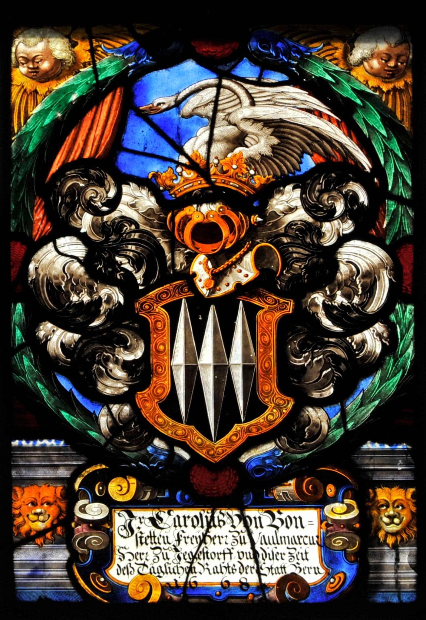 Jr. Caroluβ Von Bon= / stetten FreÿHerr Zů Vaulmarcus / Herr Zů Jegestorff vnd diser Zeit / deβ Täglichen Rahtβ der Statt Bern / 16 68.