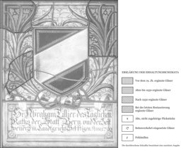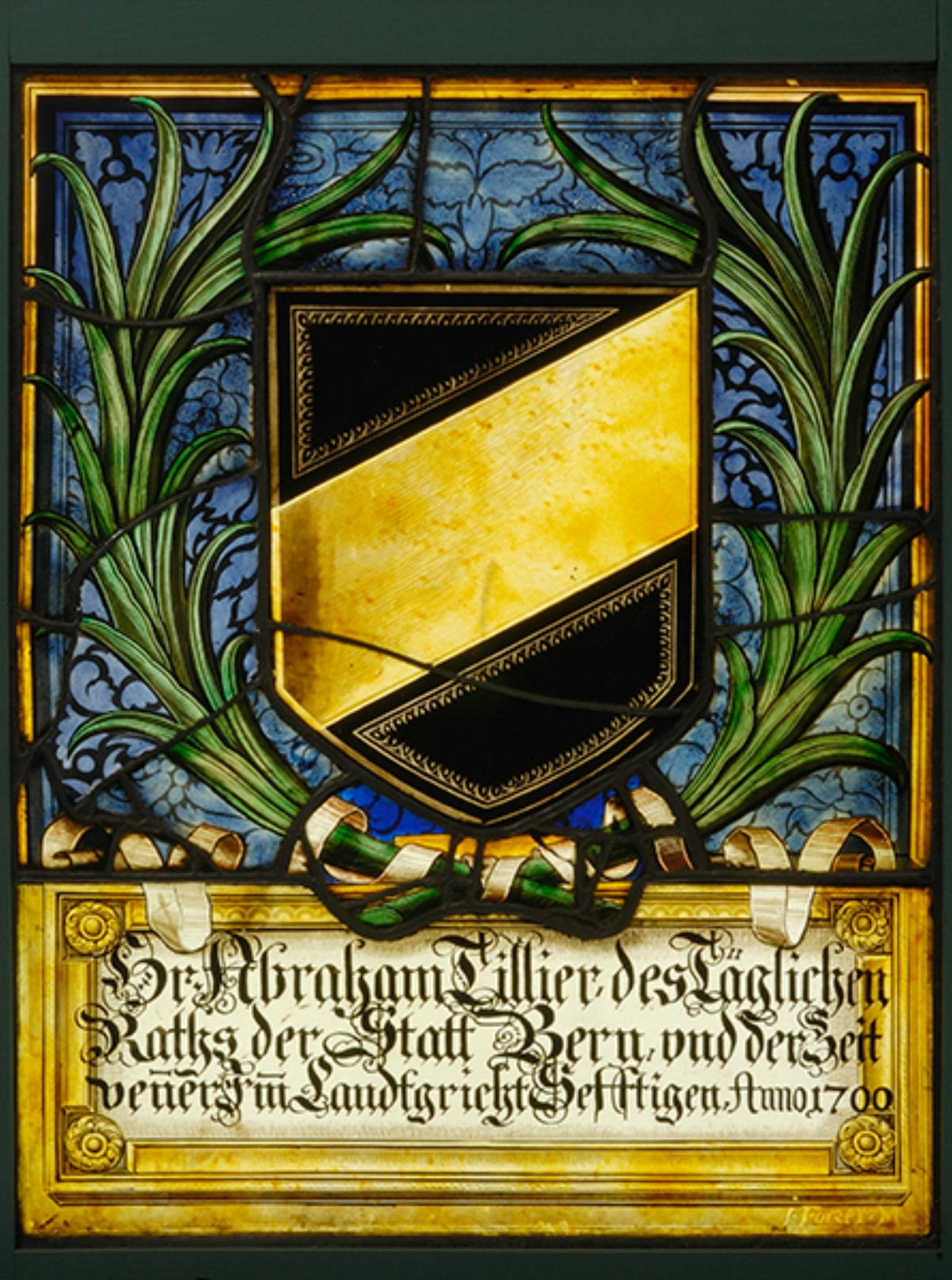 Hasler, R., Keller, S., & Bergmann, U. (2016). Wappenscheibe Abraham Tillier. Dans Vitrosearch. Consulté le 5 décembre 2025 de https://www.vitrosearch.ch/objects/2463678.