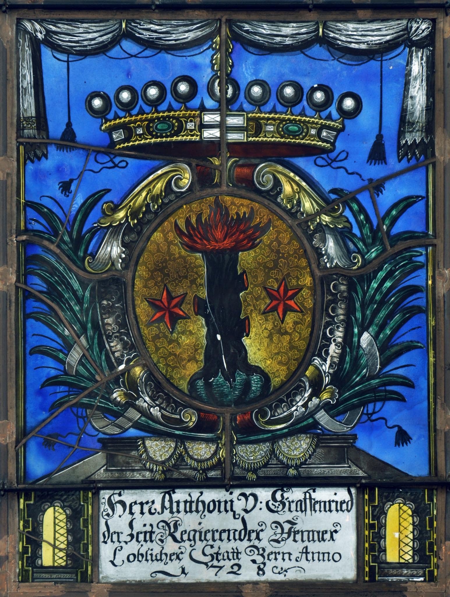 J. Keller-Ris, Die Fenster- und Wappenschenkungen des Staates Bern von 1540 bis 1797, in: Anzeiger für Schweizerische Altertumskunde NF 17/1915, S. 170.