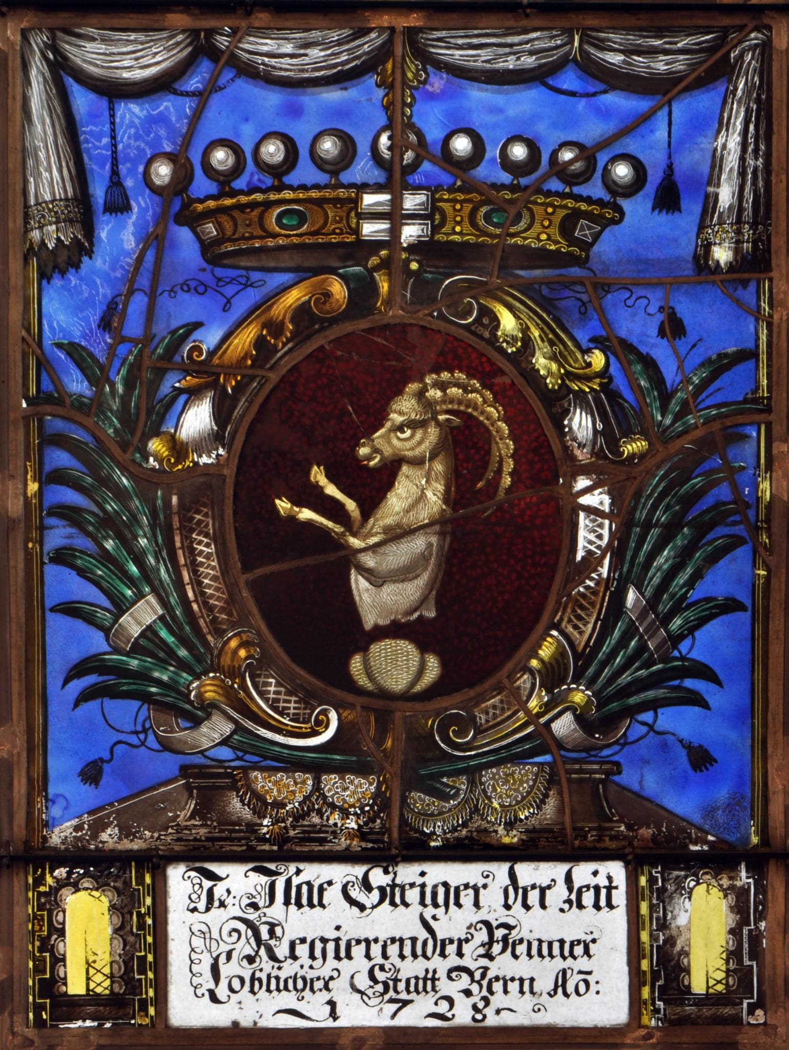 Jr: Jsac Steiger der Zeit / Regierender Venner / Loblicher Statt Bern Ao: / 1728.