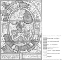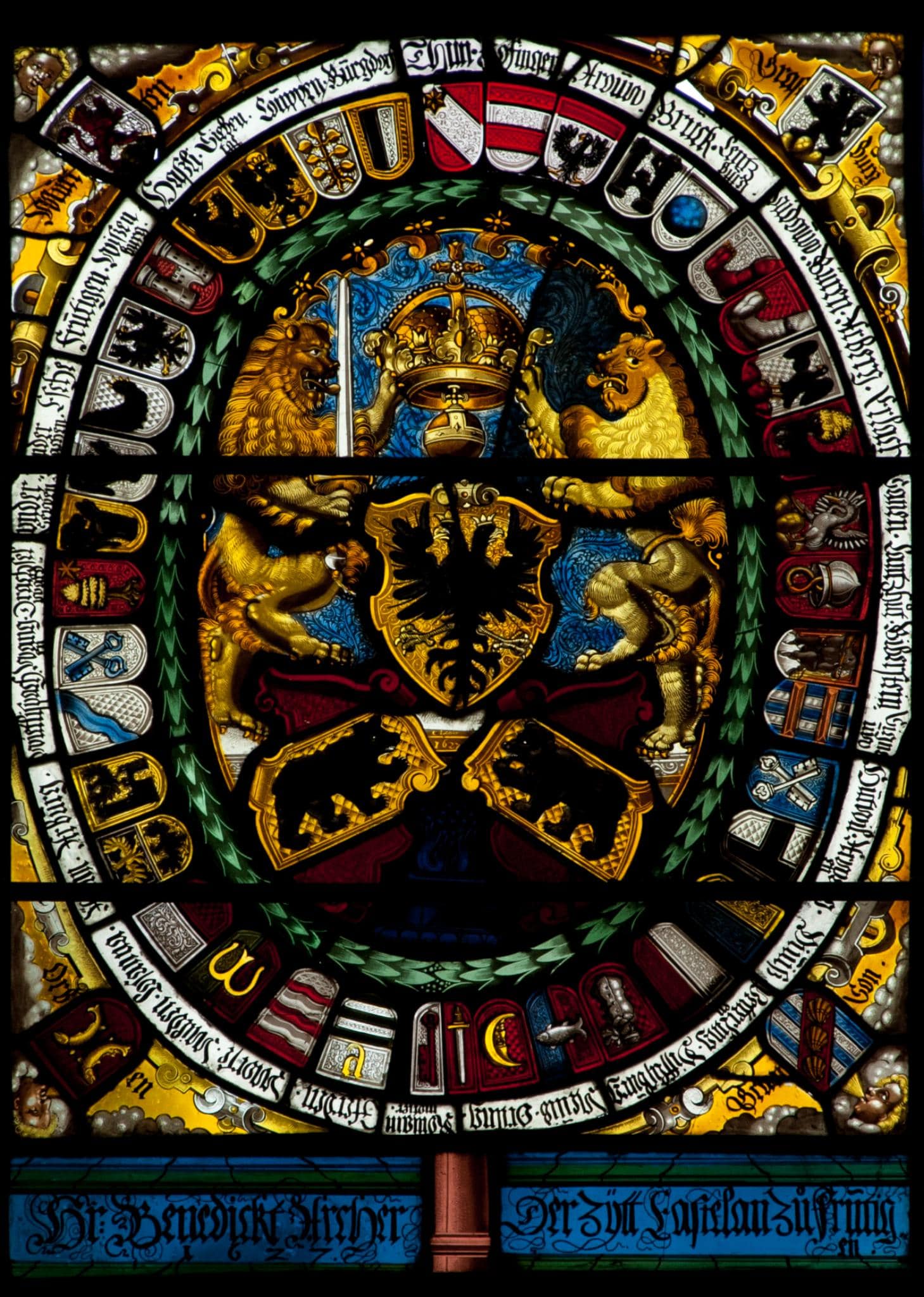 Wappen Bern, Reich; Ämterwappen Thun, Zofingen, Aarau, Brugg, Lenzburg, Nidau, Büren, Aarberg, Erlach, Saanen, Landshut, Biberstein, Signau, Huttwil, Aarwangen, Vevey, Payerne, Avenches, Nyon, Oron, Romainmôtier, Yverdon, Morges, Moudon, Lausanne, Aigle, Aarburg, Wiedlisbach, Wangen, Trachselwald, Unterseen, Interlaken, Aeschi, Frutigen, Weissenburg, Simmental, Hasli, Laupen, Burgdorf; Murten, Grasburg, Orbe, Grandson