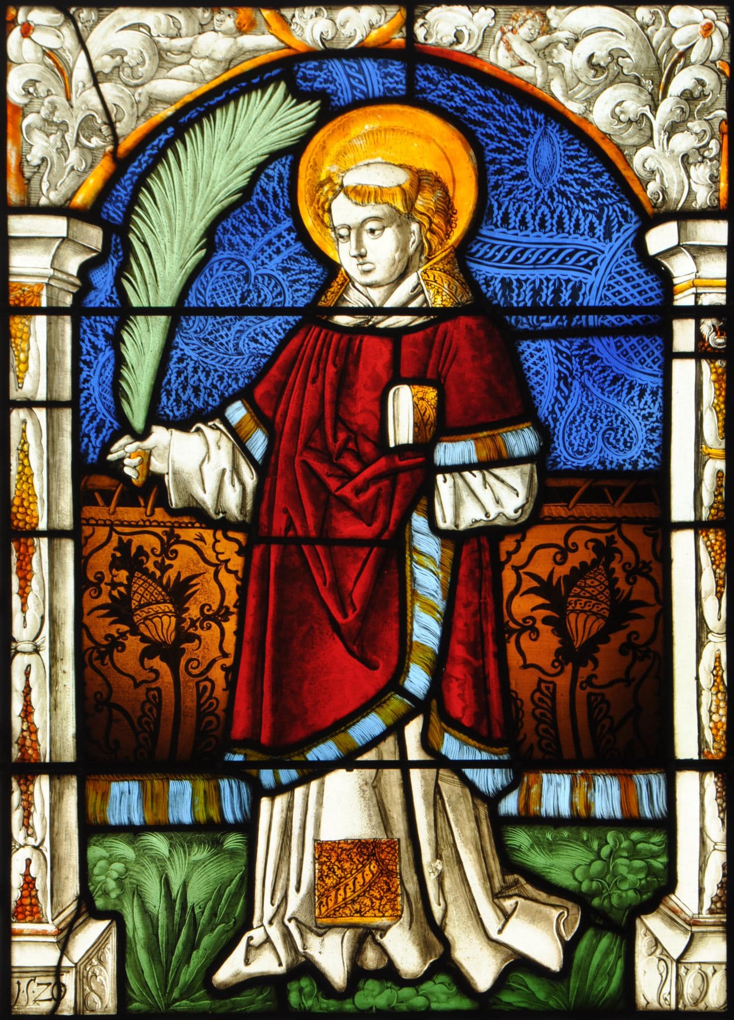 11H(VINCENT) · Vincent de Saragosse (ou de Valence), diacre et martyr; attributs possibles: livre, grappe de raisin, dalmatique, gril (à pointes), meule, corbeau, vaisseau