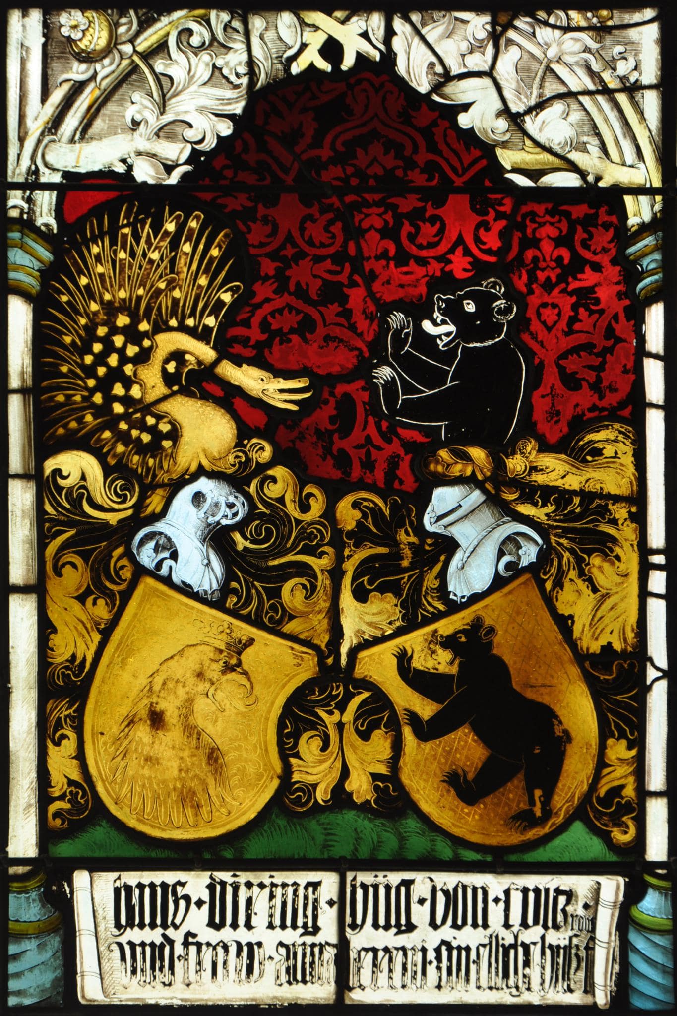 Allianzwappenscheibe Hans Thüring Hug von Sulz und Anna Berni, Bär