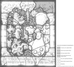 Hasler, R., & Keller, S. (2016). Allianzwappenscheibe Wilhelm I. von Diesbach und Helena von Freiberg. Dans Vitrosearch. Consulté le 5 décembre 2025 de https://www.vitrosearch.ch/objects/2465859.