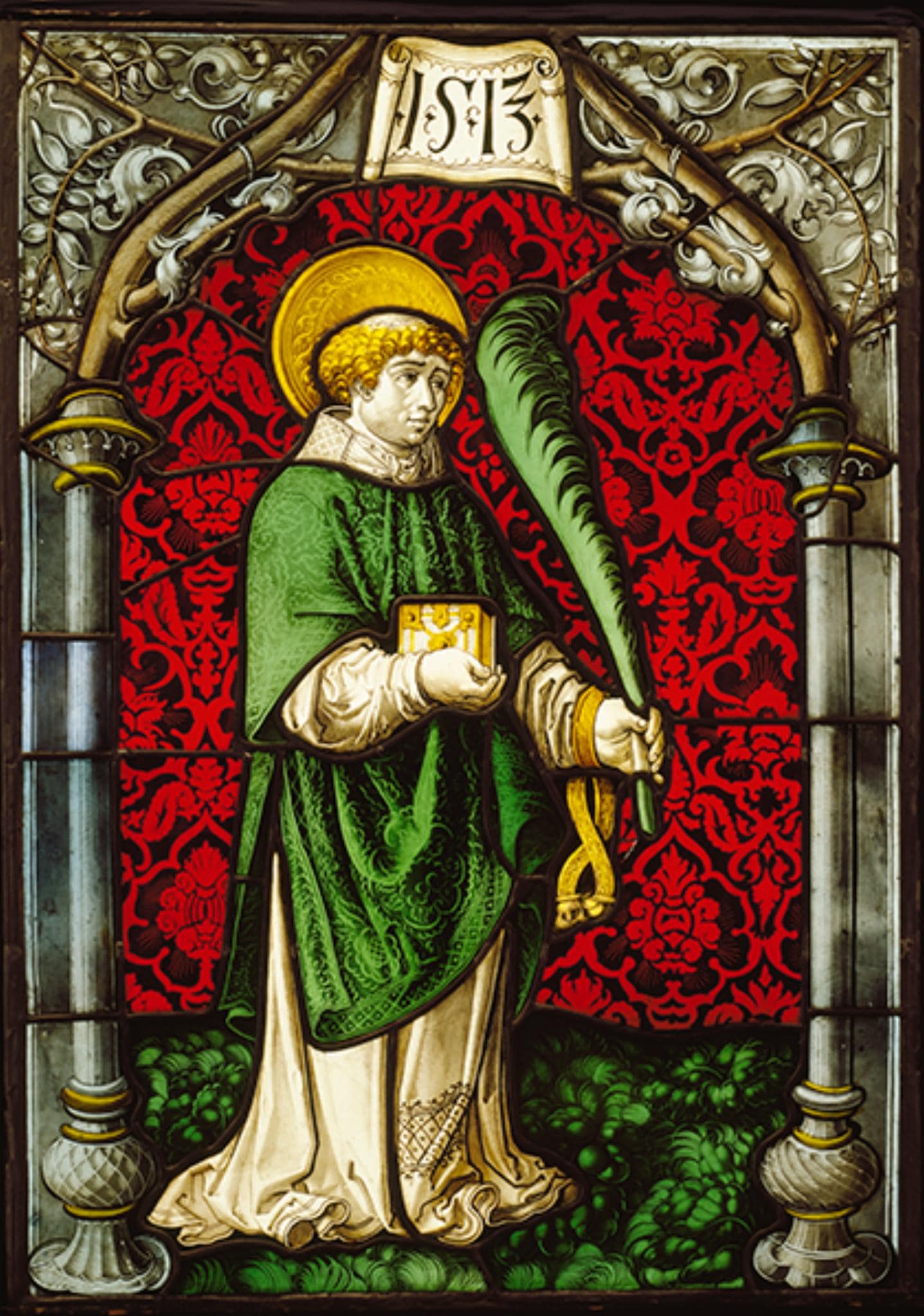Hermann Schmitz, Die Glasgemälde des königlichen Kunstgewerbemuseums in Berlin. Mit einer Einführung in die Geschichte der deutschen Glasmalerei, Bd. 1, Berlin 1913, S. 179 (irrtümlich als hl. Stephanus bezeichnet).