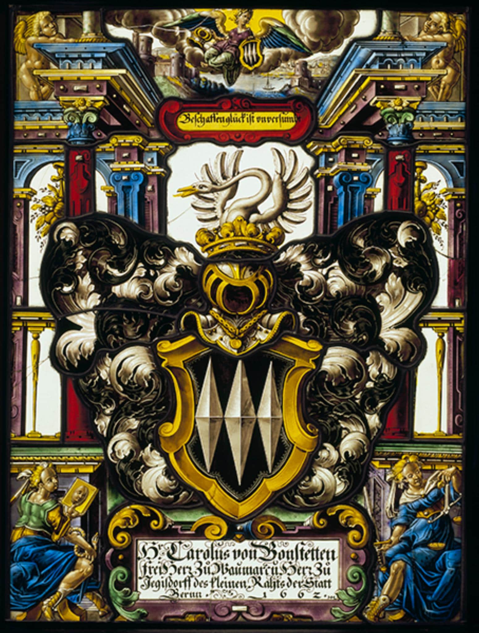 Hr. Carolus von Bonstetten / freiHerr Zů Waumarcu Herr Zů / Jegisdorff des kleinen Rahts der Statt / Bernn 1662 HHL.
