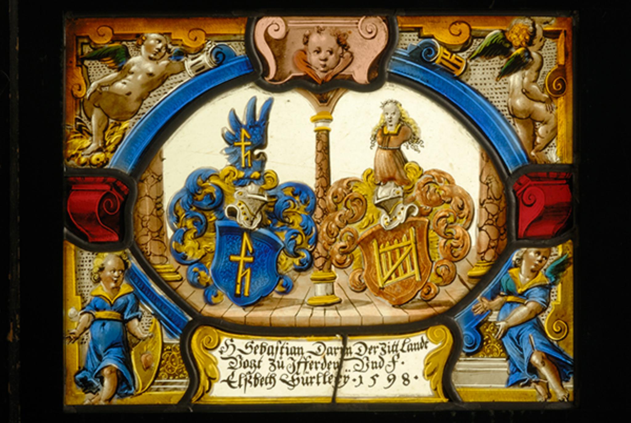 Vorliegende Scheibe stammt offenbar aus einer mehrteiligen Serie. Ein zugehöriges Stück mit den Wappen von Wilhelm Fels und Katharina Morell ist durch den Entwurf von Hans Jakob Dünz in der Sammlung Wyss des Bernischen Historischen Museums dokumentiert (BHM Bern, Inv. 20036.721; Hasler 1996/97; Bd. 1, Kat.-Nr. 314). Darauf befindet sich das Besitzer-Monogramm Thüring Walthers, der jedoch aufgrund fehlender stilistischer Bezüge zu den für ihn in Anspruch genommenen Arbeiten nicht als Autor von Darms Scheibe in Frage kommt. Diese dürfte stattdessen Hans Jakob Dünz nach seinem Entwurf selbst ausgeführt haben. Darauf deutet auch das vermutlich von Dünz gefertigte, stilistisch eng verwandte Glasgemälde Sebastian Imhags von 1598 in der Kirche Oberbalm.
