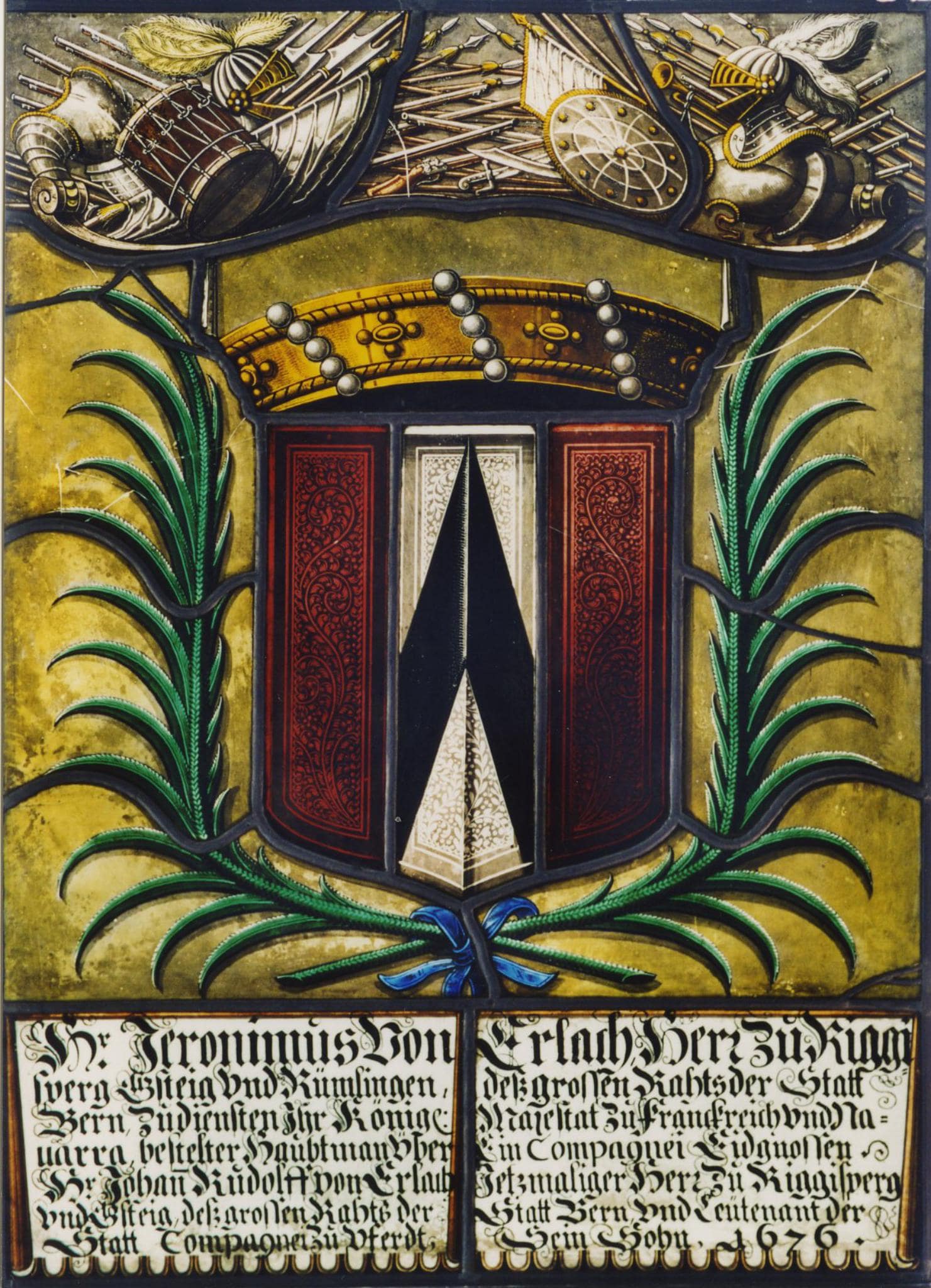 Wappenscheibe Hieronymus und Johann Rudolf von Erlach, Herren zu Riggisberg