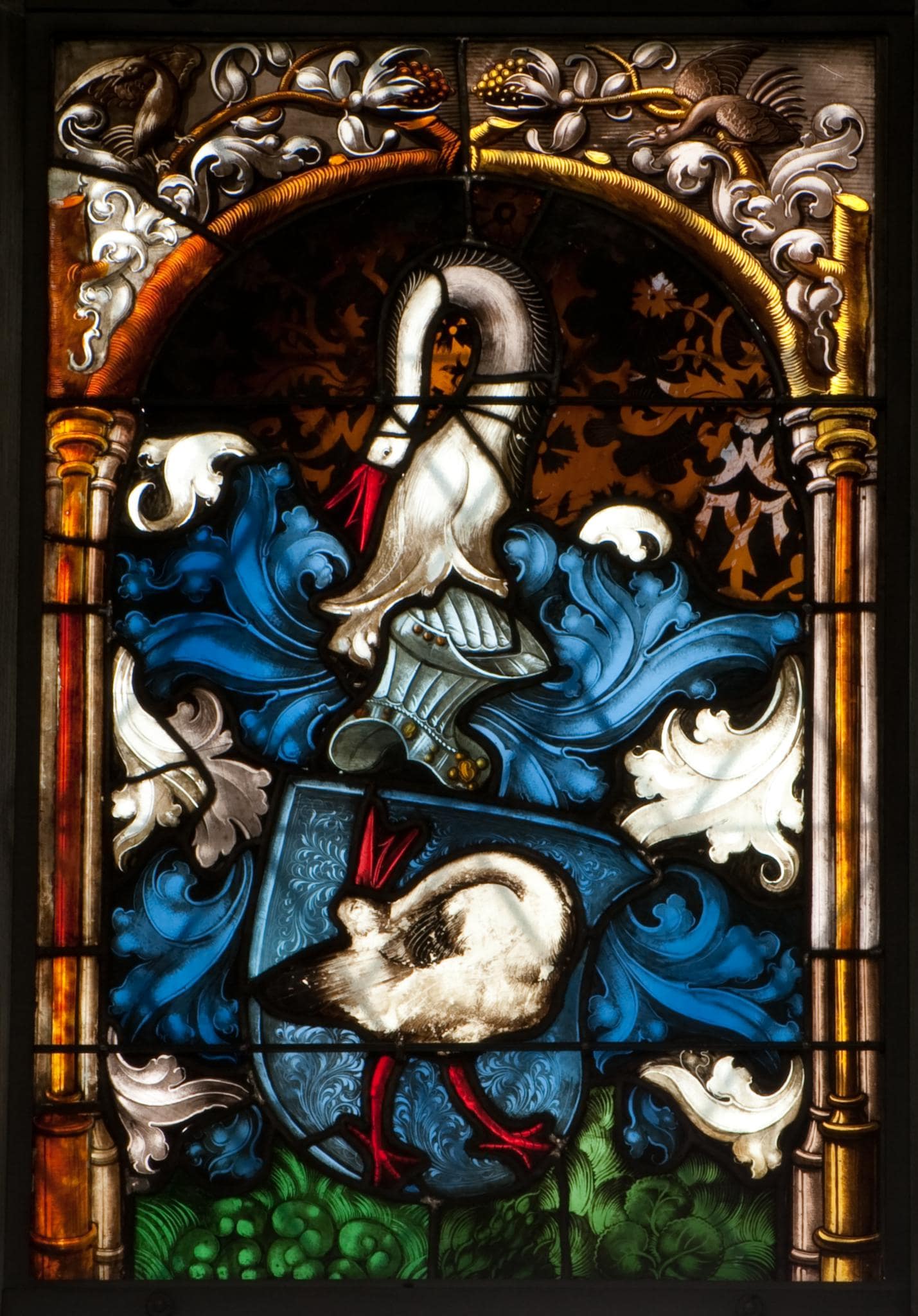 Farbloses und farbiges Glas; Bemalung mit Schwarzlot und Silbergelb.