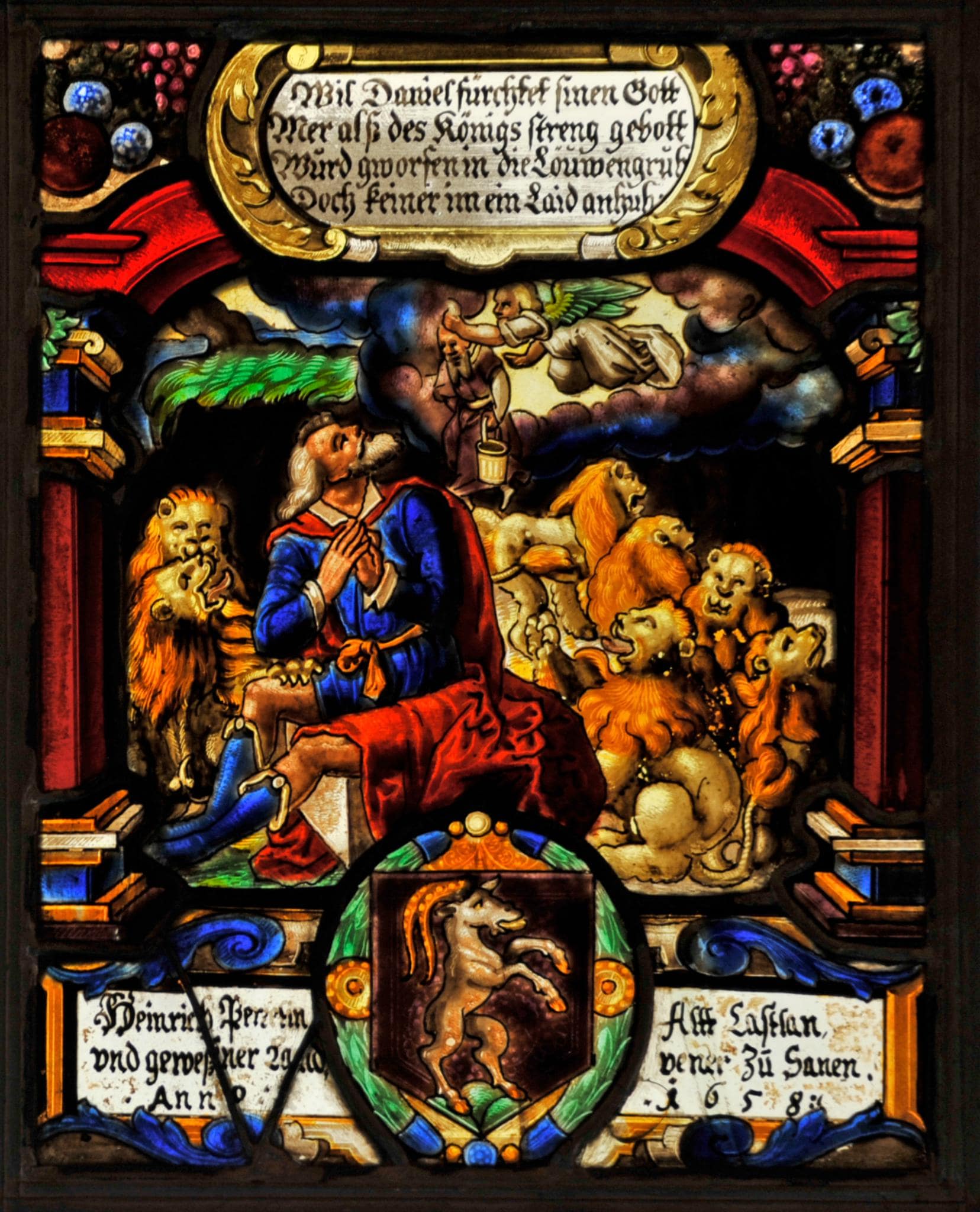 Bildscheibe Heinrich Perreten mit Daniel in der Löwengrube