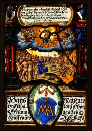 Bildscheibe Hans Mezener (Mätzener, Metzener) und Apollonia von Grünigen mit Jüngstem Gericht