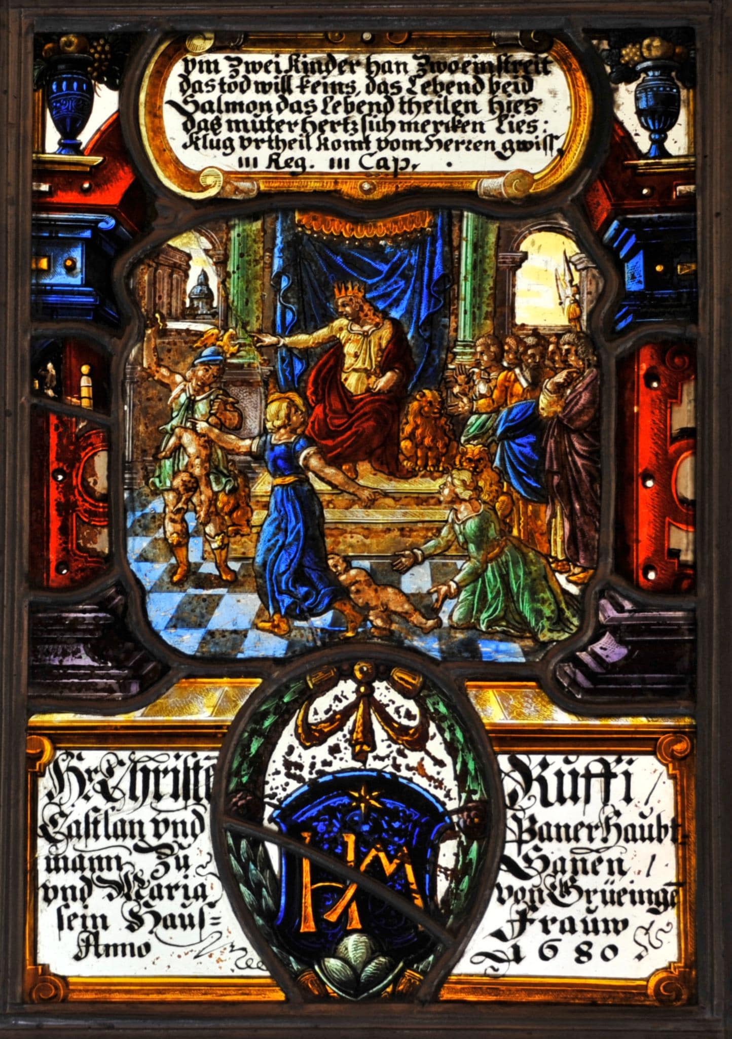 Bildscheibe Christian (Christen) Rufy (Ruffi, Rufi) und Maria von Grünigen mit dem Urteil Salomons