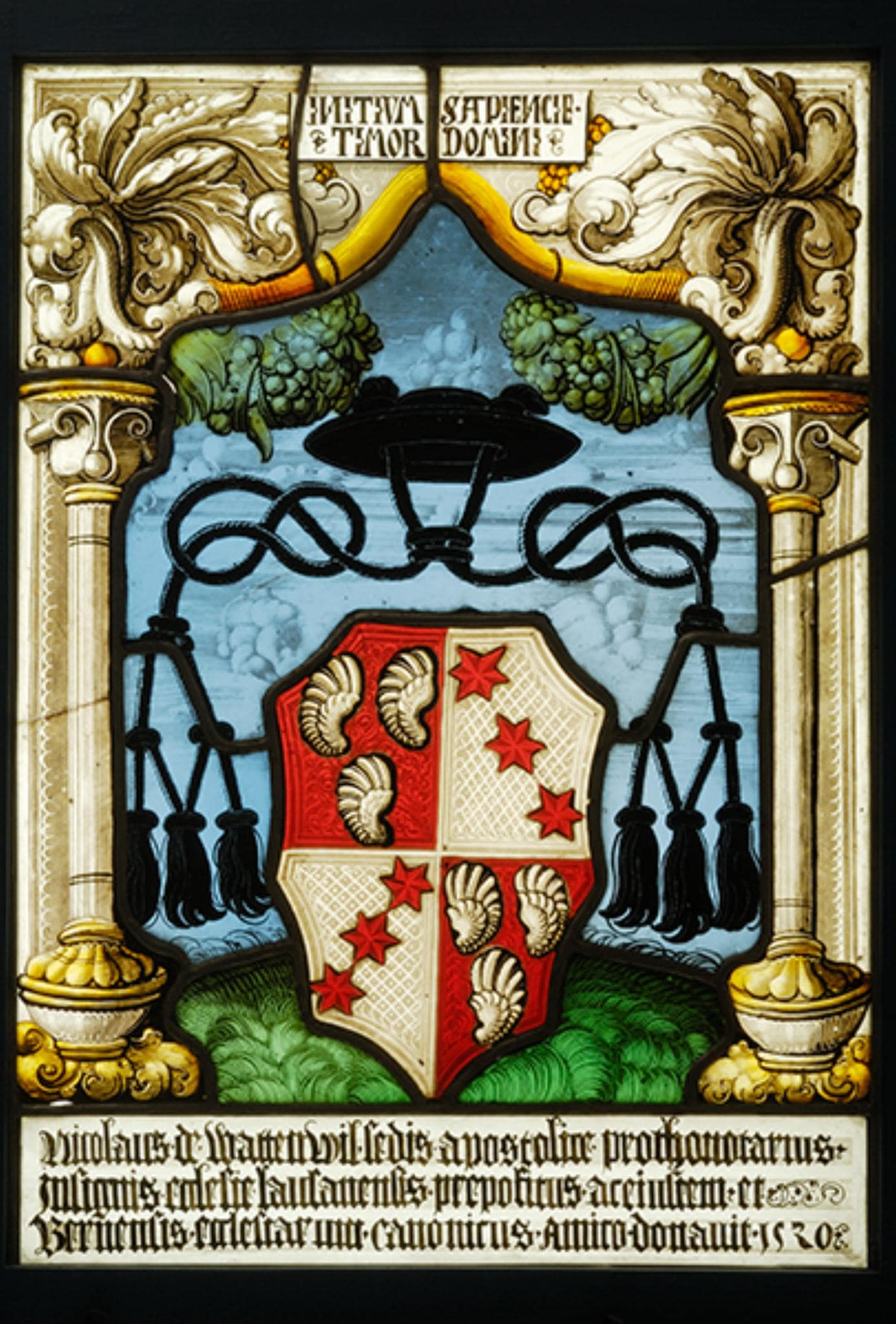 Niklaus von Wattenwyl (1492–12.3.1551), Sohn Jakobs (1466–1525) und der Margaretha von Muhleren, absolvierte ab 1505 Studien in Basel, Köln und Poitiers. 1509–1511 studierte er in Paris mit einem savoyischen Stipendium. 1508 wurde er auf Fürsprache seines Vaters Chorherr am Berner Münster. 1512 reiste er nach Rom an die Kurie, wo er 1513 Protonotar wurde und ein Kanonikat am Lausanner Domstift erhielt. 1514 erfolgte seine Wahl zum Propst des Lausanner Domstifts. Unter Kardinal Schiner war er für die päpstliche Diplomatie eine wichtige Stütze im Kampf gegen die französische Krone, die damals in Bern zunehmend an Einfluss gewann. 1517 schloss er das Studium des kanonischen Rechts an der Universität Rom mit einem Linzentiat ab. Gleichzeitig erhielt er ein Kanonikat am Basler Domstift. 1518 wurde er Pfarrer in Romont. 1521 verzichtete er auf die Lausanner Propstwürde. Am 5. März 1523 wurde er auf Fürsprache seines Vaters zum Berner Münsterpropst erwählt, womit seine geistliche Karriere ihren Höhepunkt erreichte. Als dortiger Propst stand Niklaus von Wattenwyl in Kontakt zu Zwingli, dessen reformatorische Ideen er unterstützte. 1525 trat er als Berner Münsterpropst zurück, verzichtete auf alle hohen kirchlichen Ämter und heiratete Klara May, die Schwester seines Schwagers Jakob (die May waren wie die von Wattenwyl eine durch Handel reich gewordene Familie, welche die Reformation unterstützte). 1527 kaufte Niklaus von Wattenwyl die Herrschaft Wil (HLS 13/2014, S. 292). Zudem besass er von seinem Vater Rebgüter in Ligerz. Im Besitz der Familie von Wattenwyl befindet sich von ihm ein reich illuminiertes Gebetbuch (Braun 2004, Abb. S. 36f.). Der gleiche gevierte Wappenschild wie auf vorliegender Scheibe findet sich auf einem später geschaffenen Silberpokal in Privatbesitz (Braun 2004, Abb. S. 35). In einem von Jakob von Wattenwyl, dem Vater von Niklaus, gestifteten Votivbild in Privatbesitz ist dessen Sohn in einem Porträt festgehalten (Wegeli 1941).