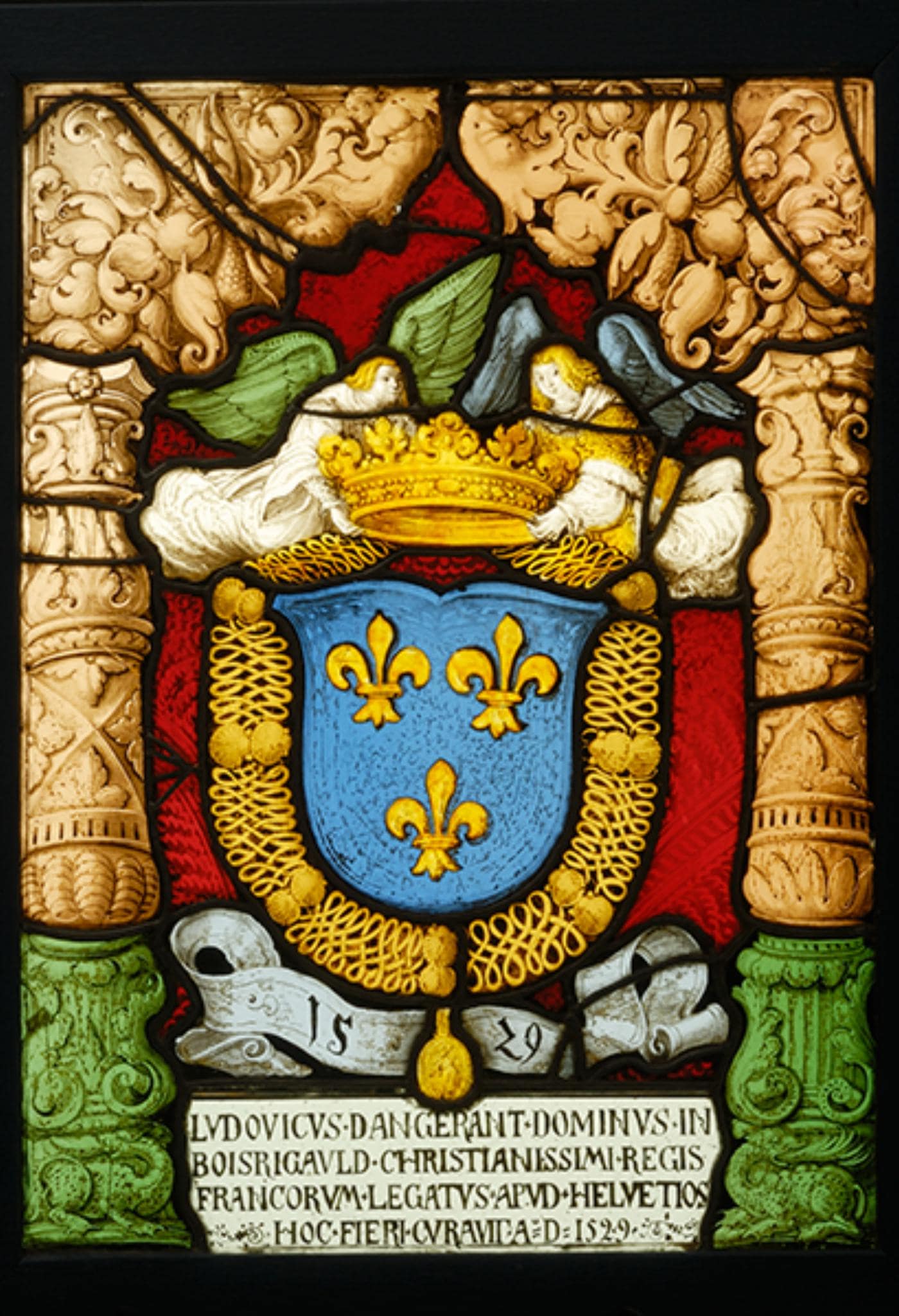 LVDOVICVS. DANGERANT. DOMINVS IN / BOISRIGAVLD. CHRISTIANISSIMI. REGIS / FRANCORVM. LEGATVS. APVD. HELVETIOS / HOC. FIERI. CVRAVIT. Ao. D 1529.