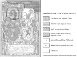 Im Schloss Holligen befinden sich elf weitgehend analog komponierte und in den Massen übereinstimmende Freundschaftsscheiben aus den Jahren von 1632 bis 1634. Sie enthalten jeweils die Wappen zweier aus Berner Familien stammender Stifter. Davon entstanden diejenigen mit den Wappen Stürler/Wurstemberger und Tillier/Archer 1632, diejenigen mit den Wappen Ryhiner/Dick, Berseth/Baumgarter, Fellenberg/Kohler und Kirchberger/Tillier 1633 sowie diejenigen mit den Wappen von Bonstetten/von Diesbach, von Erlach/Michel, Morlot/von Graffenried, Steiger/Manuel und von Wattenwyl/Steiger 1634. Im Bernischen Historischen Museum gibt es drei weitere zu diesem Zyklus gehörende Werke. Davon wurden zwei 1632 von Marquard Zehender dem Älteren und Franz Güder sowie Marquard Zehender dem Jüngeren und Martin Fels gestiftet (BE_1568, BE_1569, BHM Bern, Inv. 58084, 58085). Das dritte von 1634 zeigt die Wappen von Hans Franz von Luternau und Franz Ludwig von Graffenried (BE_6414, BHM Bern, Inv. 4988). Schliesslich gesellt sich dazu die verschollene, durch eine Aufnahme dokumentierte Scheibe von 1632 mit den Wappen des (Hans) Rudolf Zehender und des Wilhelm Fels (SNM Zürich, Foto-Neg. 96568). Mehrere der angeführten Glasgemälde besitzen in der oberen Zone Ergänzungen (vor allem in Form blauer Gläser). Wie im Falle der Wappenscheibe Morlot/von Graffenried dürften bei den meisten von ihnen an deren statt ursprünglich zwei Fruchtschalen dargestellt gewesen sein. In der Komposition heben sich die fünf Glasgemälde von 1632 zwar leicht von denjenigen beider folgender Jahre ab, indem ihre Inschriftentafeln reich mit Rollwerk verziert sind und nicht die ganze Scheibenbreite einnehmen. Weil sie in den Massen sowie im Stil und Schriftcharakter mit den übrigen Stücken übereinstimmen, darf man aber auch sie zu diesem Zyklus zählen. Bislang konnten aus den Quellen keine Hinweise zur Beantwortung der Frage gewonnen werden, wohin derselbe gestiftet wurde. Als Bestimmungsort in Betracht ziehen darf man aber das Schloss Holligen selbst. Man kann sich nämlich fragen, ob Abraham Wurstemberger 1631 als neuer Besitzer des Schlosses dieses baulich verändert und im Anschluss daran von Freunden, Kollegen und Verwandten Fenster und Wappen erbeten haben könnte. Mit Beat Ludwig Wurstemberger ist unter den Stiftern zumindest ein Mitglied seiner Familie vertreten. Ob und, wenn ja, in welcher Weise die zahlreichen übrigen Wappeninhaber mit ihm verbunden waren, liess sich bislang allerdings nicht klären.