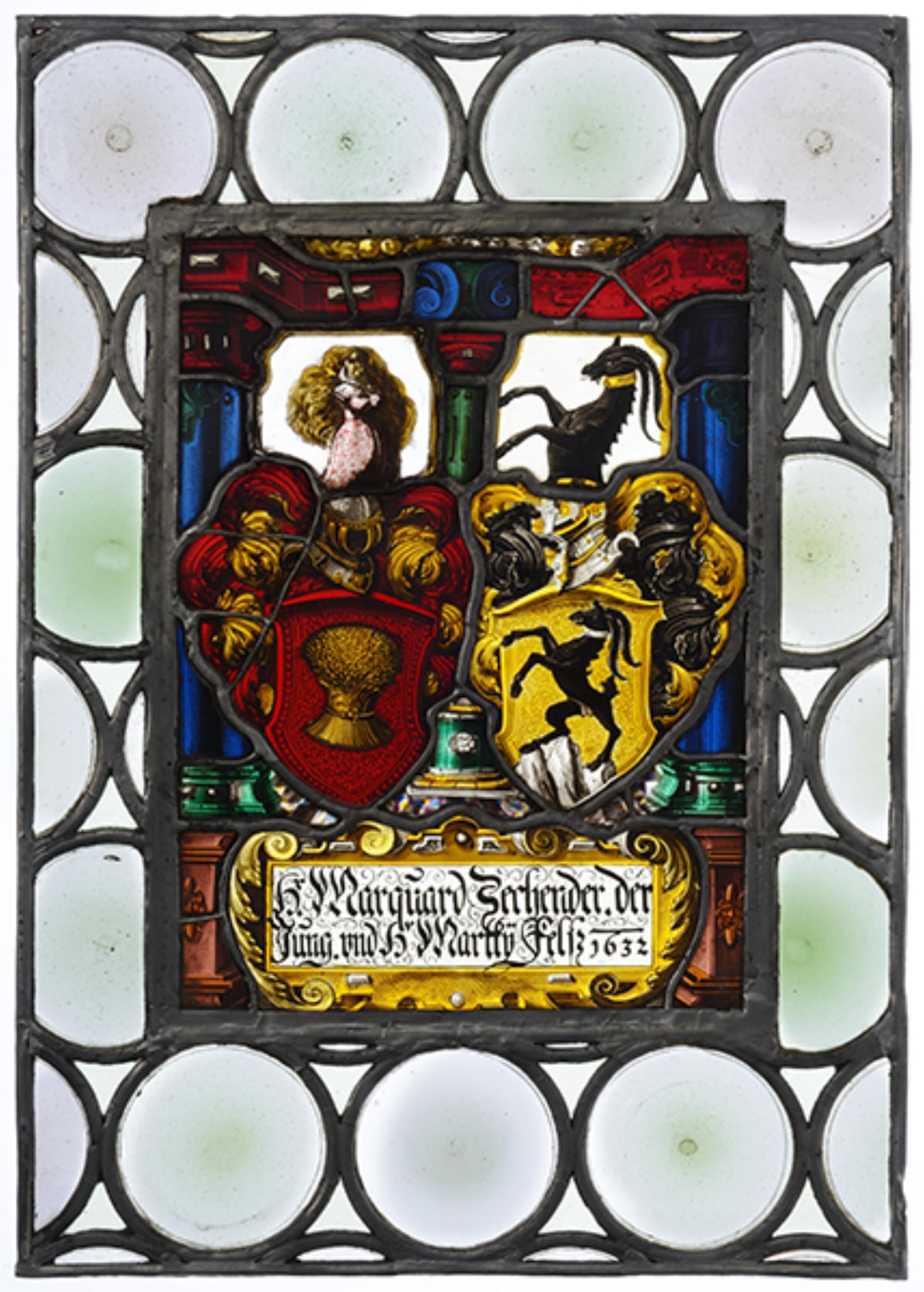 Marquard Zehender (1602–1654), der Sohn des Welschseckelmeisters Marquard (1581–1638), war Ohmgeltner, Kirchmeyer und ab 1642 Landvogt von Aarwangen. Er ging drei Ehen ein, die erste 1624 mit Johanna May, die zweite 1629 mit Katharina Steiger und die dritte 1647 mit Maria Zurkinden (HBLS 7/1934, S. 630; Kessel 2015). Von ihm gibt es die Scheibe von 1632 im Bernischen Historischen Museum (BHM Bern, Inv. 58085) und eine weitere von 1648 in der Kirche Aarwangen.