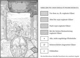 Die Scheibe schildert im Hauptbild die Schlacht bei Murten. Während im Hintergrund der Murtensee mit der Stadt erscheint, ist im Vordergrund Karl der Kühne dargestellt, der hoch zu Ross mit seinen Getreuen vor den anstürmenden Eidgenossen die Flucht ergreift und dabei einem Krieger einen Schwertstoss versetzt. Die Szene rahmen seitlich hellbraune Pfeiler mit vorgelagerten, kannelierten Säulen. Darüber erhebt sich ein stark zurückfluchtendes braunrotes Gebälk, zwischen dem die Bildlegende in einer blau-gelben Rollwerkkartusche festgehalten ist. Den Scheibenfuss füllt die Rollwerkkartusche mit der Stifterinschrift. In einem ovalen Lorbeerkranz steht zentral darin das Vollwappen Johann Rudolf Augsburgers (Ougspurgers).