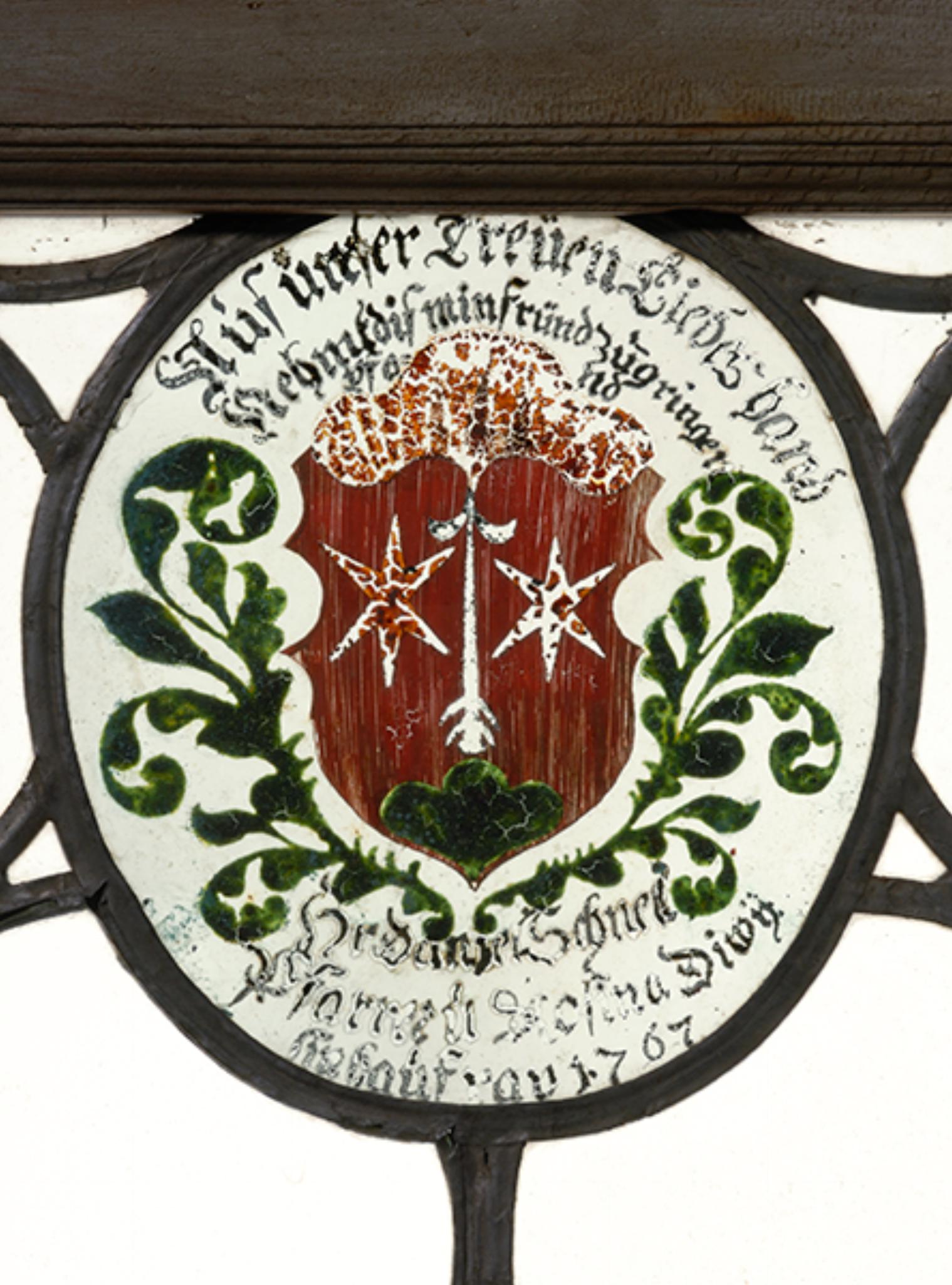 Hasler, R., & Keller, S. (2016). Ovale Wappenscheibe Daniel Schnell und Rosina Diwy. Dans Vitrosearch. Consulté le 5 décembre 2025 de https://www.vitrosearch.ch/objects/2472557.