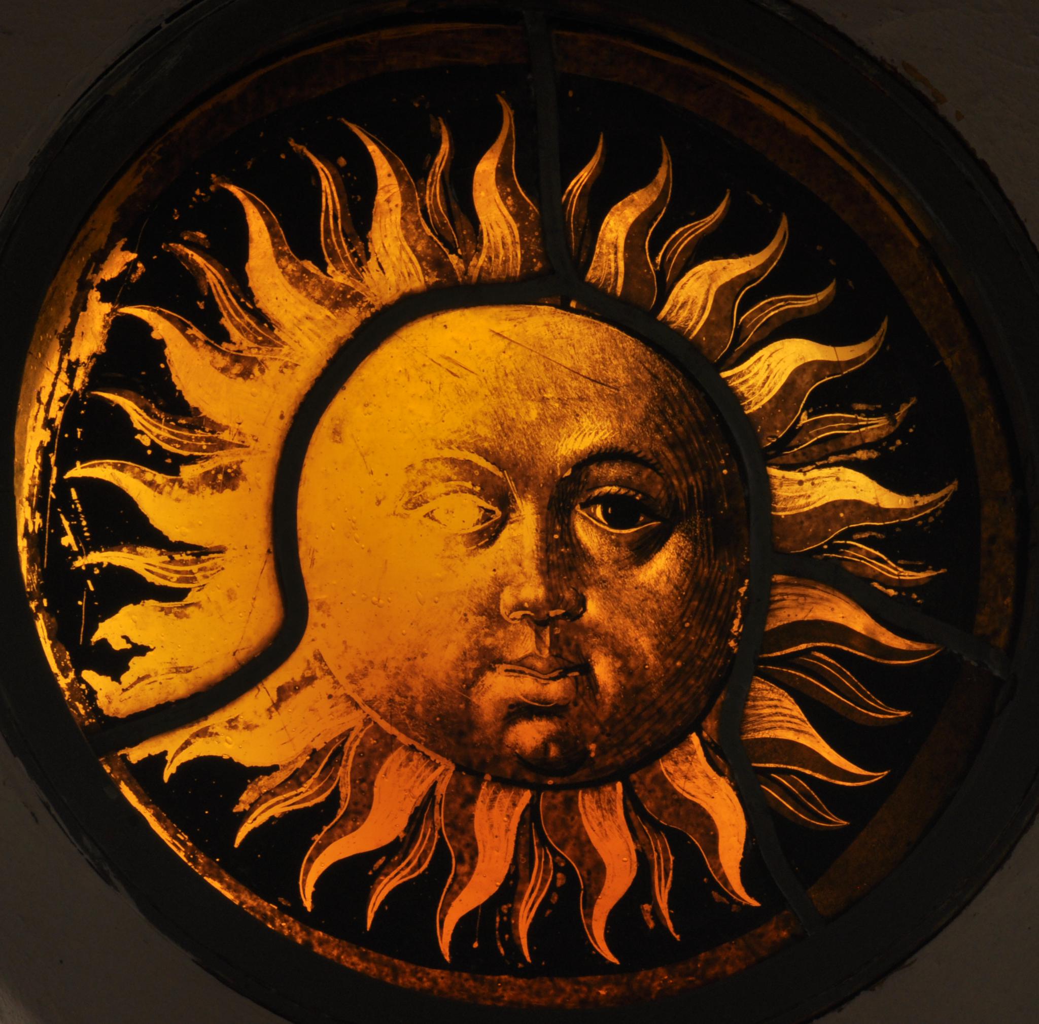 Die Rundscheibe in der Scheitelöffnung des Masswerkfensters s III zeigt die von Strahlen umringte, in Form eines Menschenkopfes gebildete Sonne in Vollansicht. Sie bildet das Pendant zum offenbar vollständig erneuerten Kopf des Mondes in der Scheitelöffnung von Masswerkfenster s II.