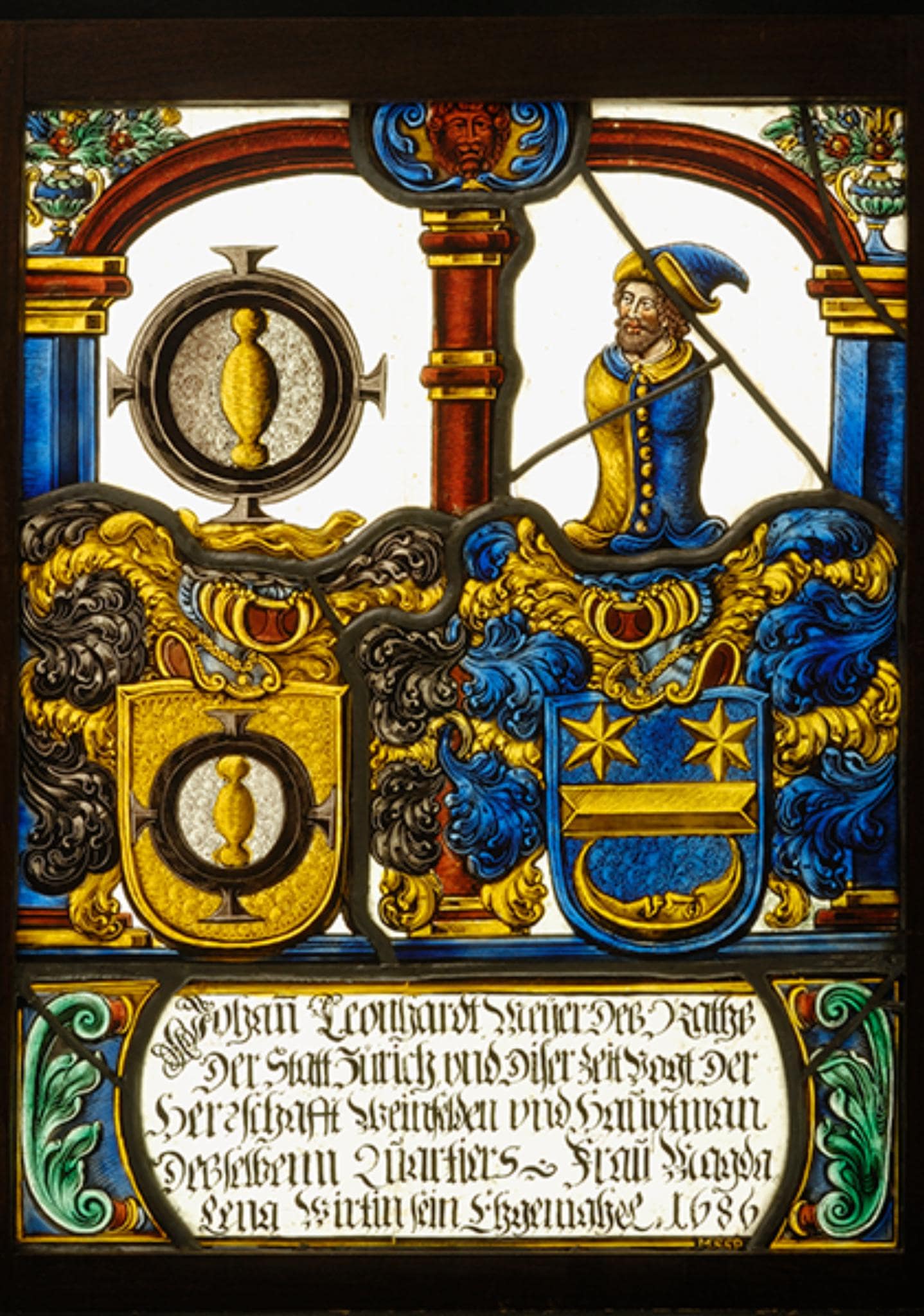 Johan Leonhardt Meÿer Deβ Rathβ / Der Statt Zürich vnd Diser Zeit Vogt Der / Herrschafft Weinfelden vnd Hauptman / Deβselben Quartiers Frau Magda / lena Wirtin sein Ehgemahel, 1686 / MSSP.
