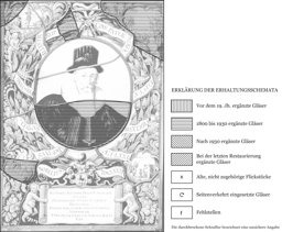 Das bedeutendste Glasgemälde Samuel Frischings ist dessen Porträtscheibe im Besitz der Schweizerischen Eidgenossenschaft. Laut dem Text auf dem Schriftband um den Kranz liess der 1668 zum Berner Schultheissen erwählte Frisching diese 1676 im Alter von 71 Jahren herstellen (von Mandachs Datierung beruht auf einem Irrtum). Wie bei den meisten anderen Glasgemälden Frischings handelt es sich um eine Arbeit des Berner Glasmalers Hans Jakob Güder (1631–1691). Darauf weisen die Putten im Blattwerk mit ihren prallen Körpern und roten Backen. Sie kennt man in gleicher Form von der 1668 in der Werkstatt Güders für die Berner Nydeggkirche geschaffenen und dort 1685 erneuerten Wappenscheibe Emanuel Steigers. Analog gestaltete Figuren zeigt gleichfalls die Wappenscheibe Samuel von Muralts, die Güder 1683 für die Kirche Nidau anfertigte. Frischings Porträtscheibe steht in der damaligen Berner Glasmalerei vereinzelt da. Sie belegt, dass Güder in Bern nicht nur als Glas-, sondern ebenfalls als Porträtmaler zu den damals führenden Künstlern gehörte. In der künstlerischen Ausführung steht Güders Werk denn auch in keiner Weise hinter den 1680 in Zürich vermutlich von Kaspar Hirt geschaffenen, im dortigen Nationalmuseum erhaltenen Rundscheiben mit den Porträts von Johannes Huss und dem Zürcher Antistes Johannes Heinrich Erni zurück (Schneider 1971, Bd. II, Kat.-Nrn. 669, 670). Kompositorisch lässt es sich entfernt mit der Porträtscheibe des Antistes Heinrich Bullinger vergleichen, die der Schaffhauser Glasmaler Daniel Forrer 1571 nach einer Vorlage Tobias Stimmers anfertigte (Schneider 1971, Bd. I, Kat.-Nr. 333).