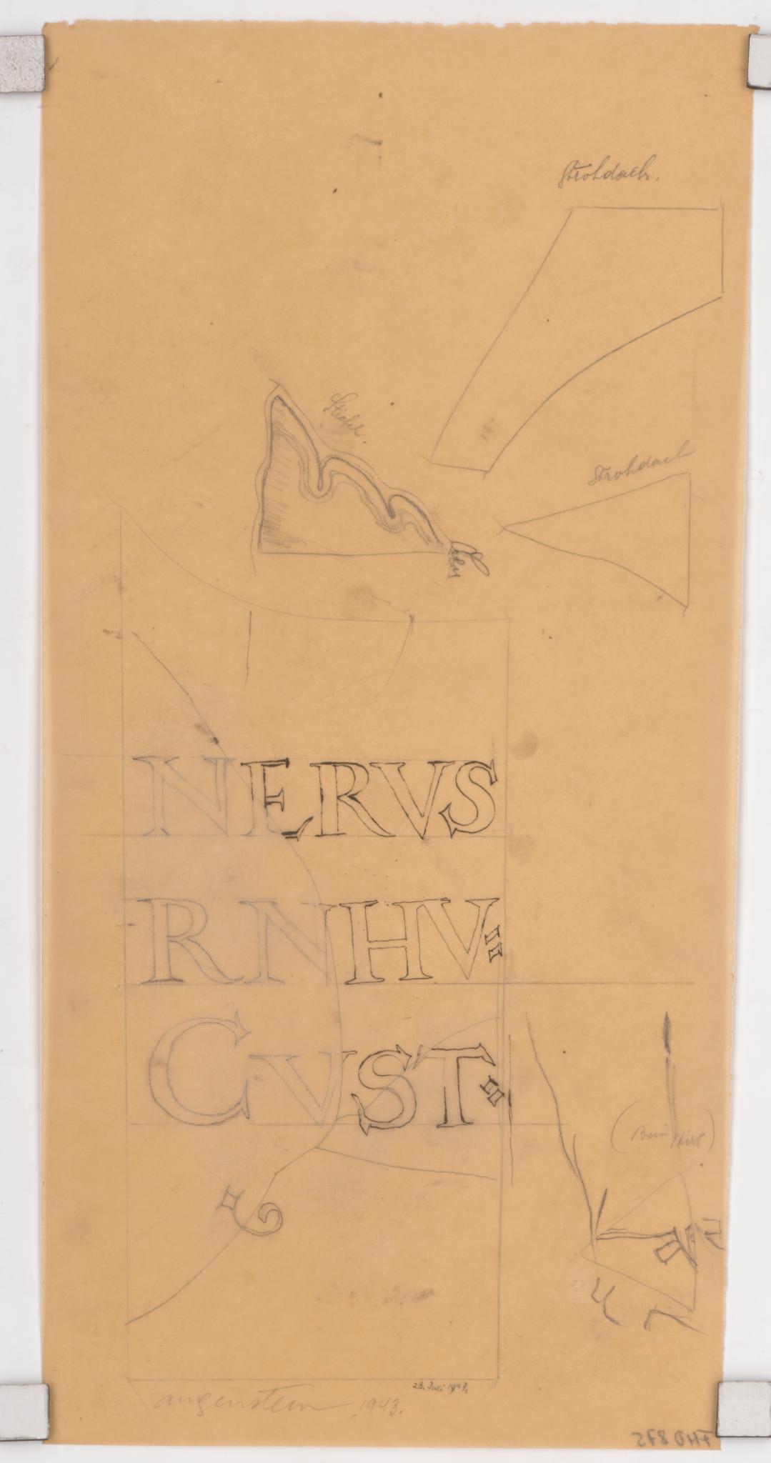 Drenckhahn setzte aufgrund dieser Schäden auch Ergänzungen ein (vgl. hierzu das Schema zu BE_1475). Bei der vorliegenden Pause ist das ergänzte Stück in der Inschrift nur mit Bleistift gezeichnet und nicht mit Tusche nachgezogen.