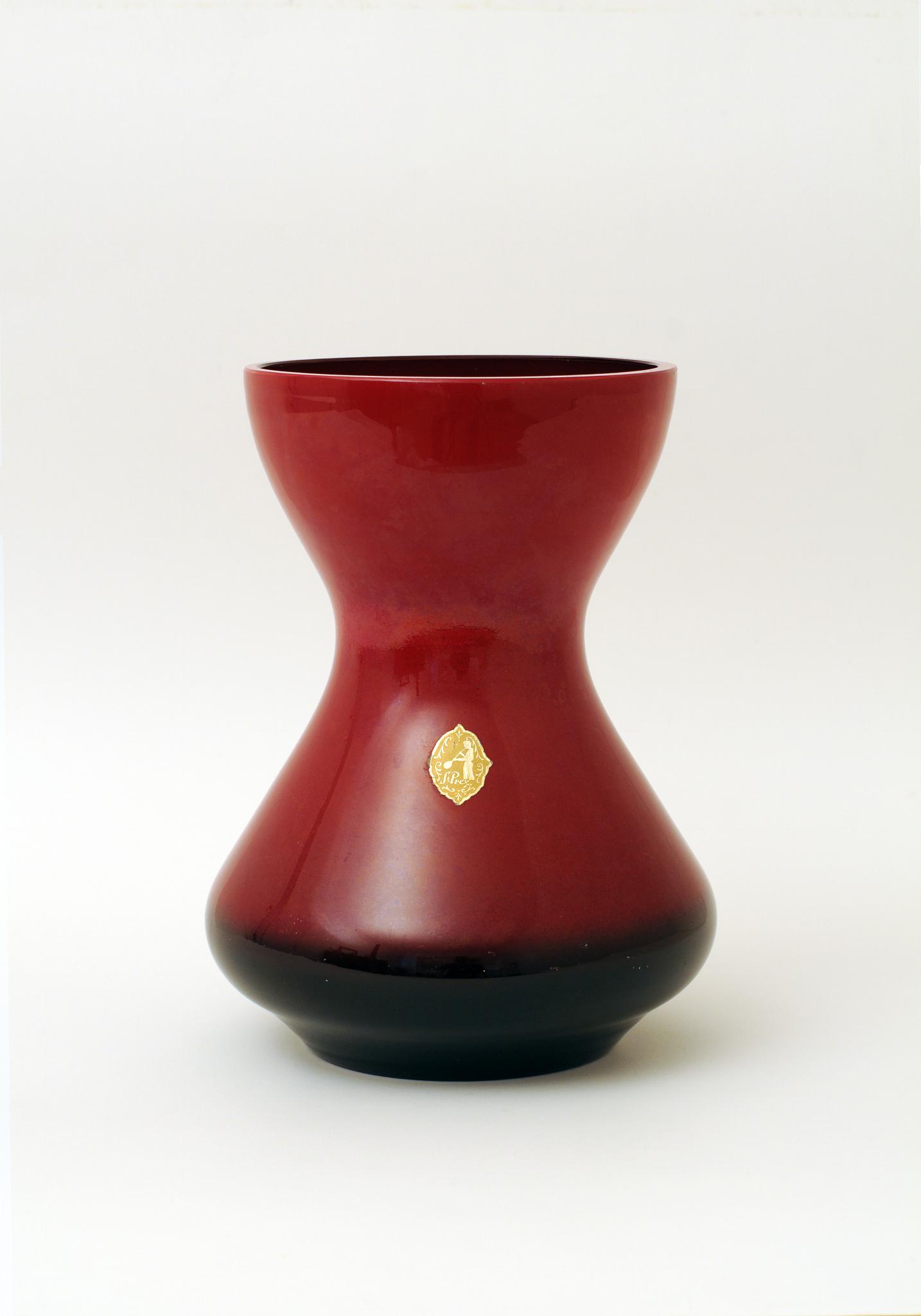 Vase rouge et noir en forme de sablier
