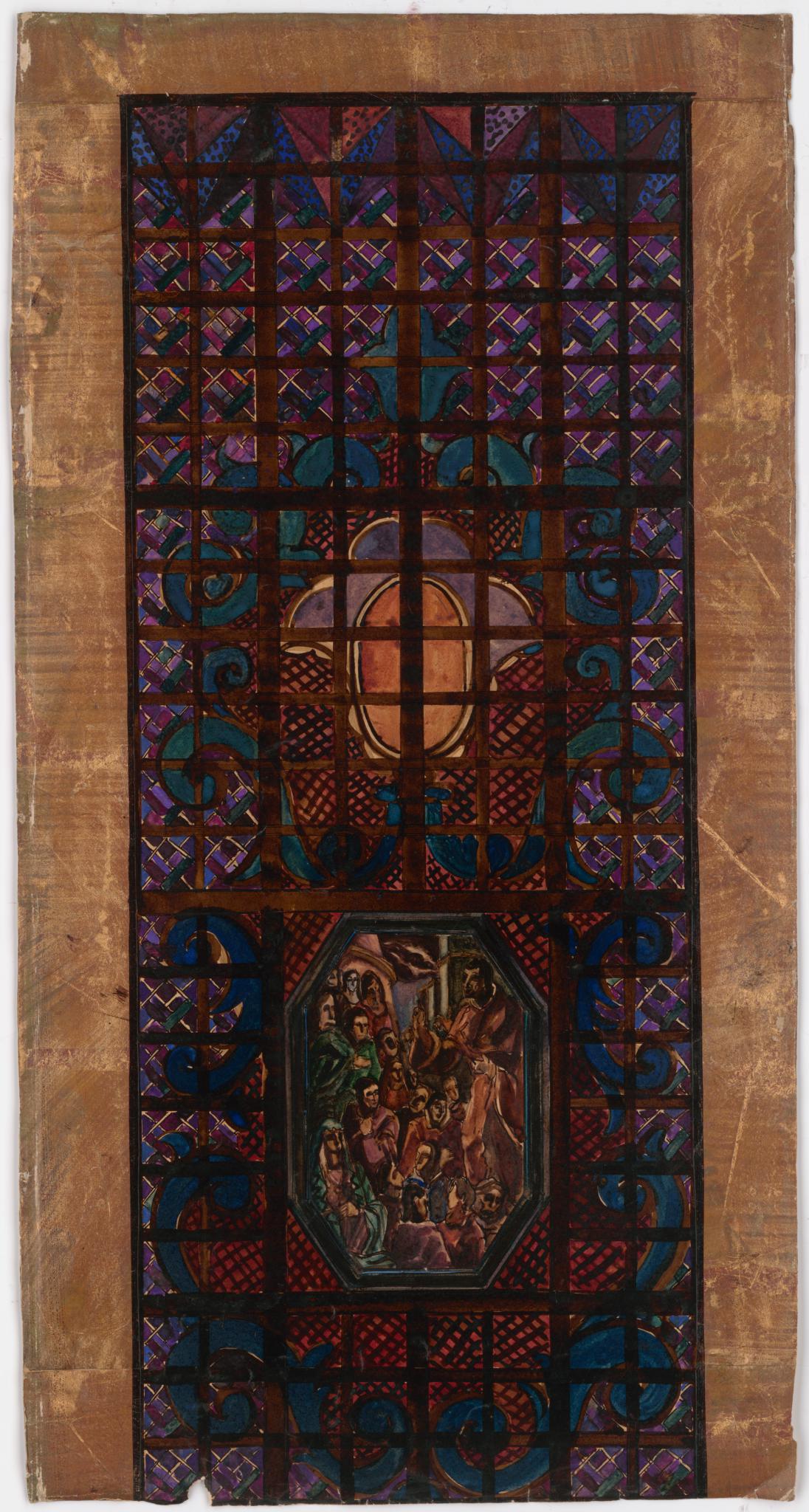 Poncet réalise une autre maquette (MP_63.02) représentant les six verrières de la paroi occidentale de l'église. Cette maquette propose le détail de la deuxième fenêtre représentée sur ce projet.