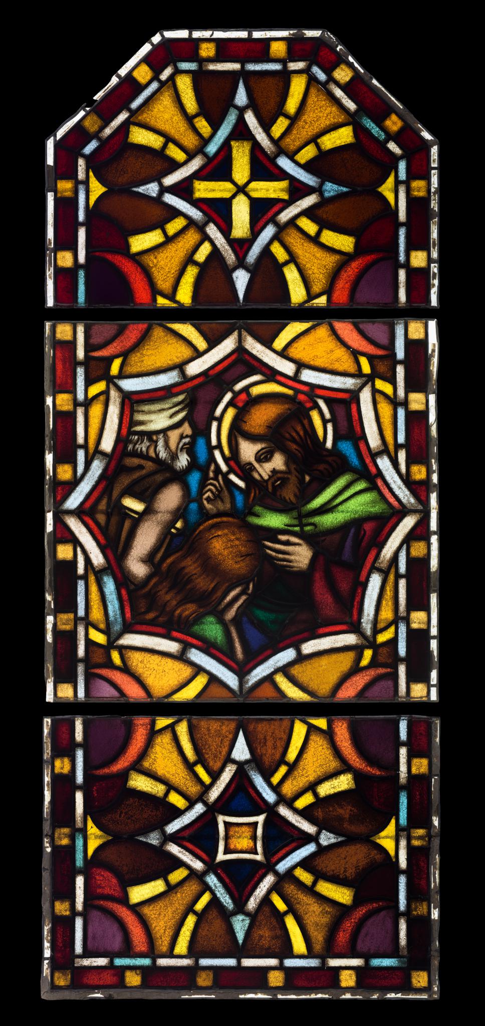 Kaiser, A., & Sauterel, V. (2017). Christ guérit un malade et pardonne à Marie-Madeleine. Dans Vitrosearch. Consulté le 5 décembre 2025 de https://www.vitrosearch.ch/objects/2503263.