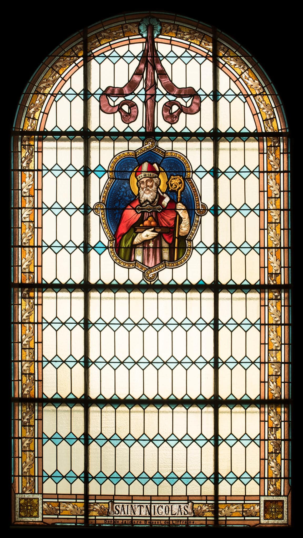 Cette verrière se situe dans la quatrième fenêtre de droite de la nef de l’église Notre-Dame-de-la-Nativité de Vuisternens-devant-Romont, important édifice néo-classique du canton de Fribourg (Lauper, 2012, p. 204). Le cycle des vitraux de cette église a été réalisé par l’atelier Kirsch & Fleckner en 1906. Ce vitrail est un don d’Isidore Bossel de Liffrens, comme l’indique l’inscription s’y trouvant.