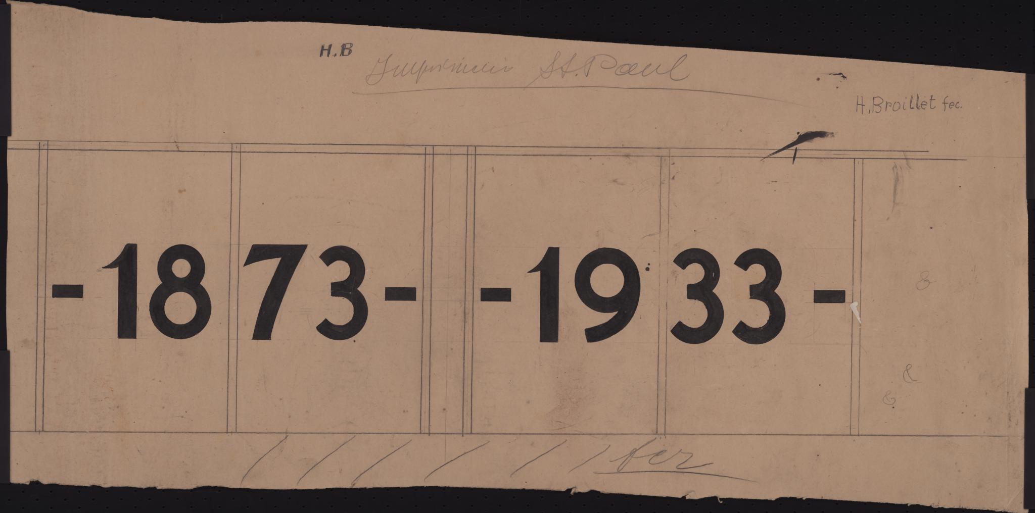 Imprimerie St. Paul / – 1873 – – 1933 – / fer (de haut en bas)