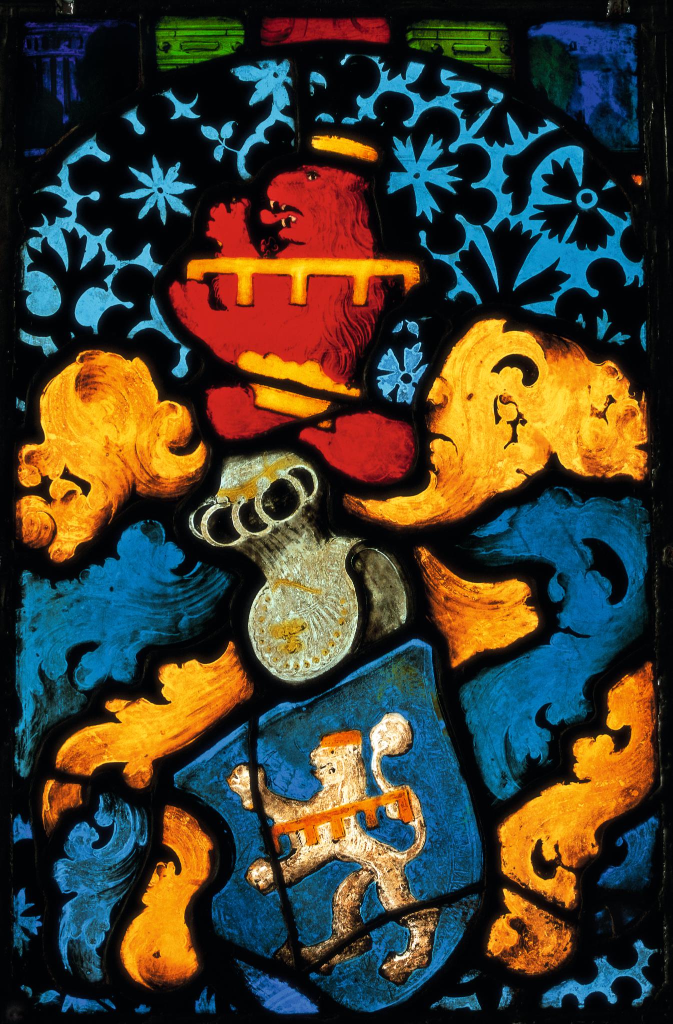P[eissard], N[icolas]. Catalogue des vitraux armoriés exposés dans les galeries. Fribourg 1927. S. 4 (3me fenêtre).
