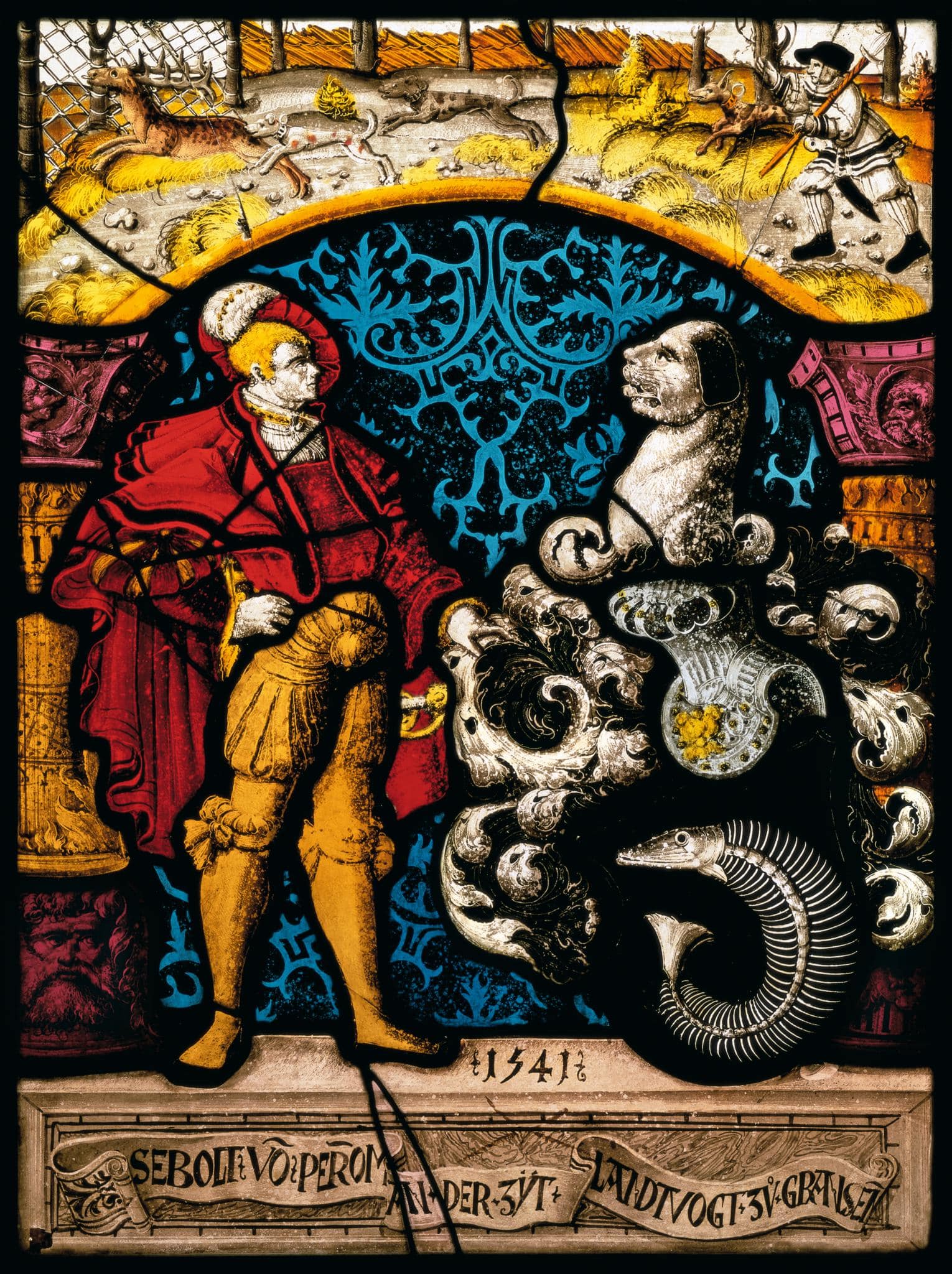 Bergmann, Uta. Die Freiburger Glasmalerei des 16.–18. Jahrhunderts / Le vitrail fribourgeois du XVIe au XVIIIe siècle (Corpus vitrearum Schweiz, Reihe Neuzeit, Bd. 6 / époque moderne vol. 6). 2 Bde / vol. Bern et al. 2014. Bd. 2. Kat.-Nr. 40.