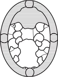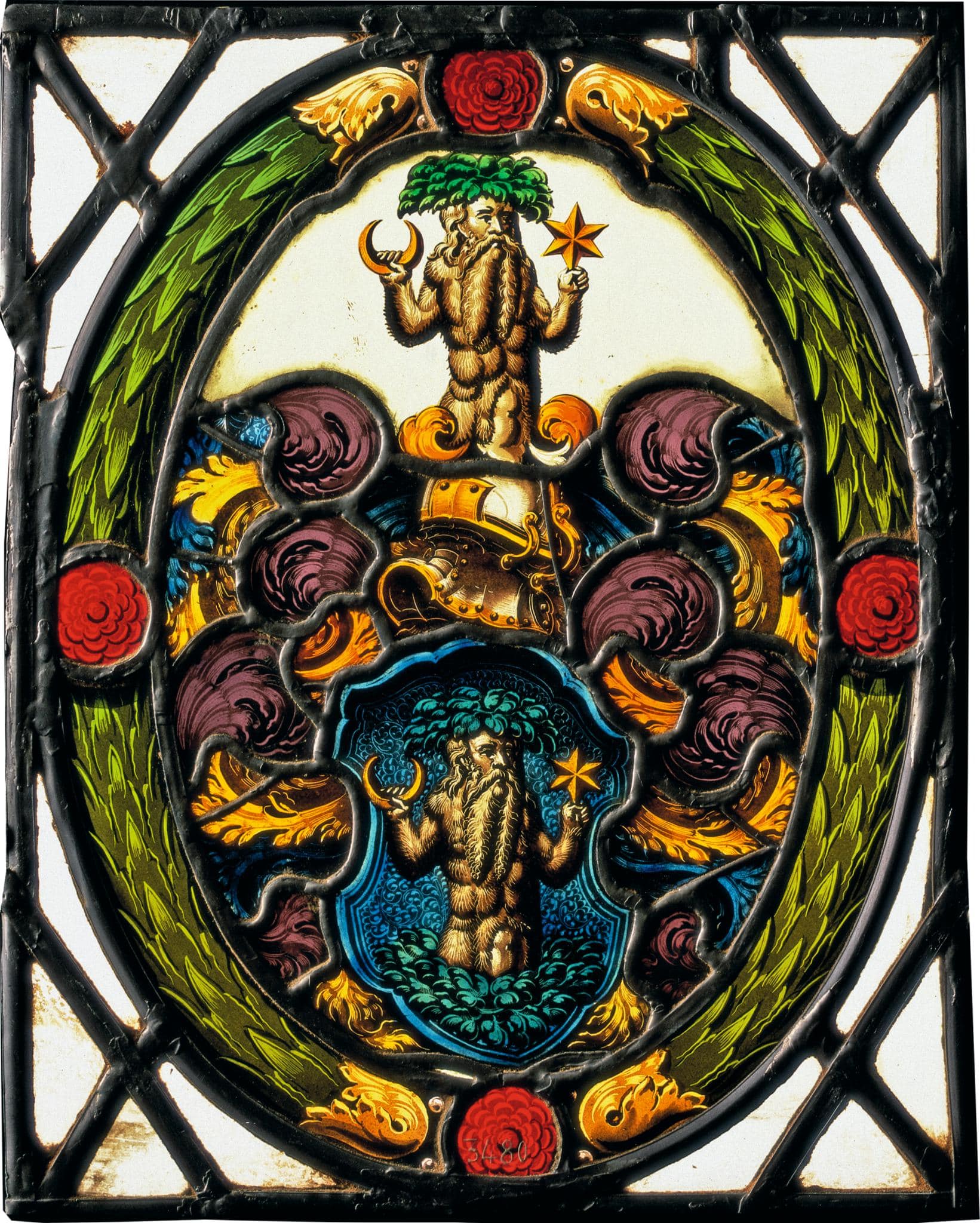 In einem erneuerten grünen hochovalen Lorbeerkranz mit roten Rosetten und gelben Manschetten steht vor farblosem Grund das volle Wappen der Familie Wild. Das heutige Fragment war wahrscheinlich immer oval eingefasst, doch stammt dieses sicher aus einer grösseren, ehemals rechteckigen Scheibe (vgl. FR_63–FR_66).