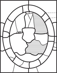 Farbloses, gelbes und rotbraunes Glas. Rotes Überfangglas mit rückseitigem Ausschliff. Bemalung mit Schwarzlot und Silbergelb in verschiedenen Farbstufen, hellem Eisenrot sowie blauen und violetten Schmelzfarben. Brandmarke: 1.