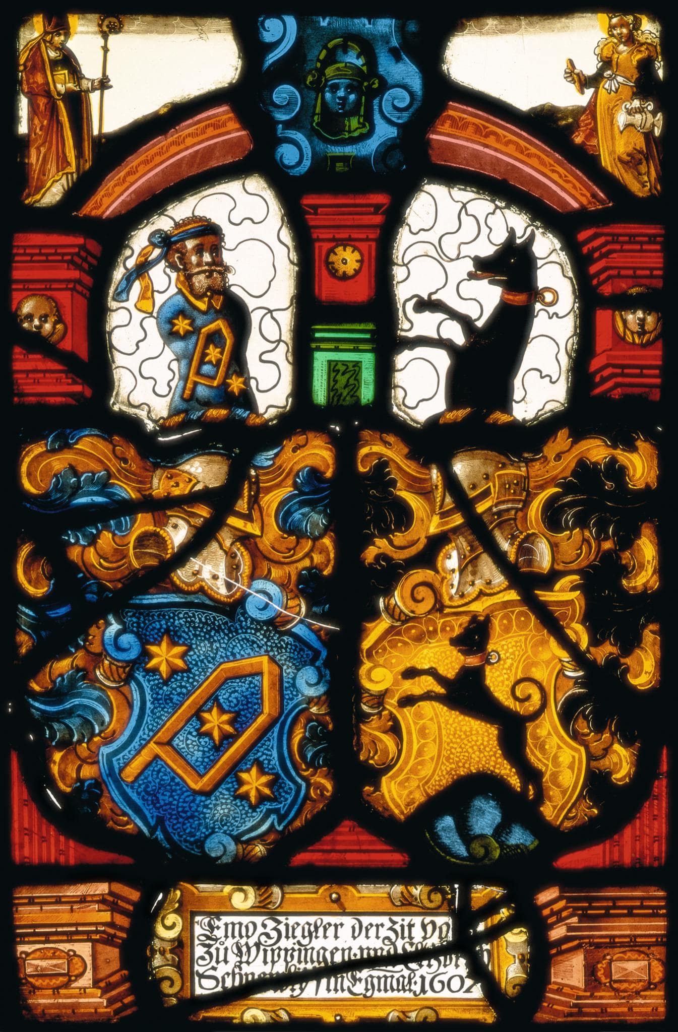 Stifterinschrift: Emo Ziegler der Zit vo[gt] / zů Wippingen. vnd Elßbeth / Schnewlÿ sin Eg͞m͞al. 1607.