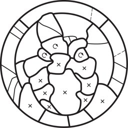 Vor blauem Damastgrund steht das im unteren Teil mit Flickstücken des Familienwappens Reyff ergänzte Stifterwappen, von dem bis auf wenige Teile der Helmdecke nur das Oberwappen der Familie Alex zugehörig ist. Ein hellblaues randständiges Band mit grüner Einfassung trägt die Stifterinschrift.