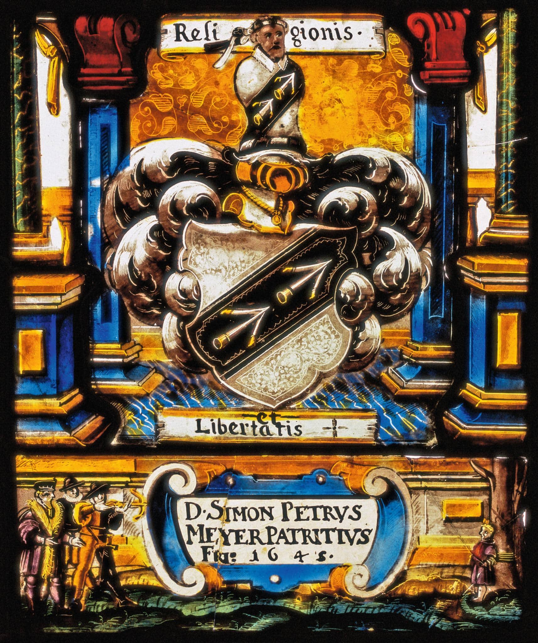 Stifterinschrift: D. Simon Petrvs / Meyer Patritivs / Fri: 1645.