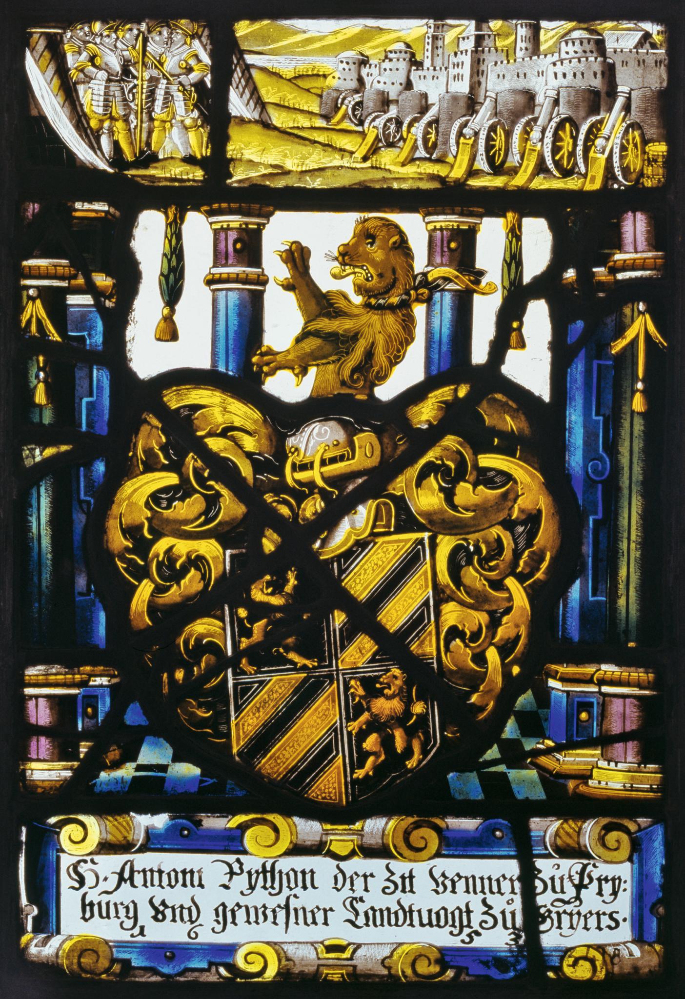 Stifterinschrift: H. Antoni Python der Zit venner zů Fry: / burg vnd gewesner Landtuogt zů Gryers. / 1653.