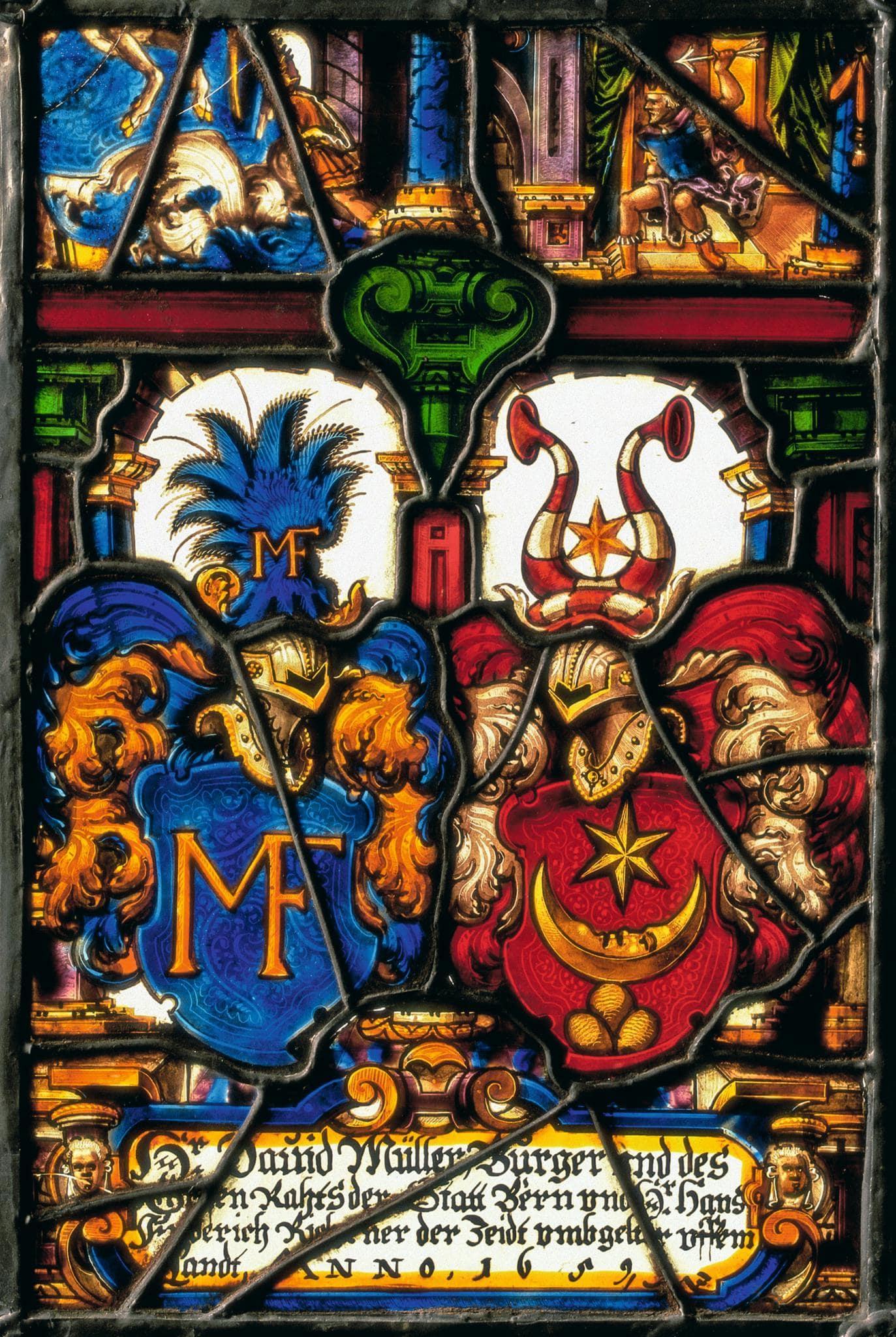 Stifterinschrift: Hr. Dauid Müller, Burger vnd des / Grosen Rahts der Statt Bern vnd Hr. Hans / Friderich Richener der Zeidt vmbgeltner vffem Landt, ANNO 1659.