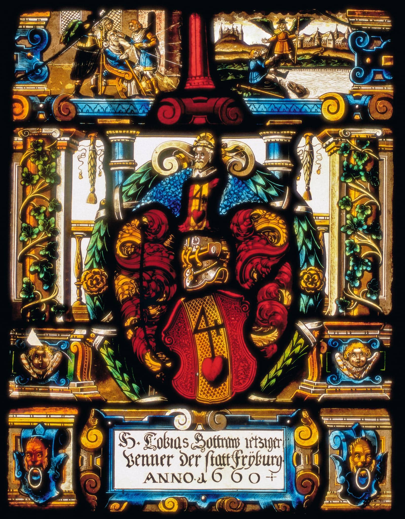 Stifterinschrift: H. Tobias Gottraw ietziger / Venner der statt Frÿburg. / ANNO 1660.