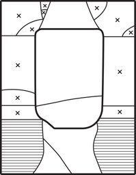 Farbloses Glas. Grünes und rotes Glas (Flickstücke). Bemalung mit Schwarzlot und Silbergelb in verschiedenen Farbstufen, Eisenrot sowie blauen und grünen Schmelzfarben (violett nur in Flickstücken).